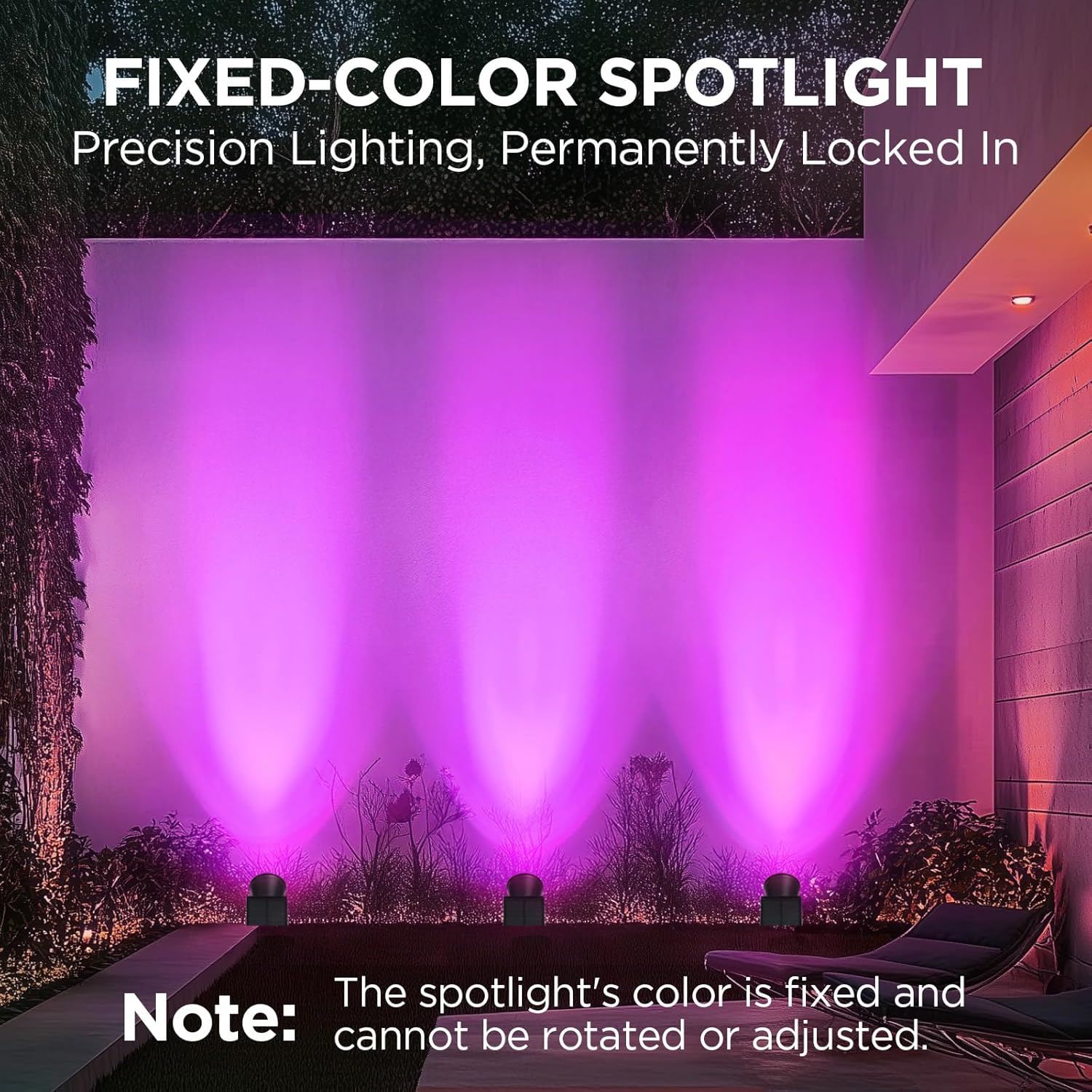- Reminder: This package contains two fixed violet-purple light spotlights with non-adjustable, permanent colors. Designed for versatile application, they can be used independently for a bold effect or combined with other colored spotlights to create vibrant festive displays and dramatic atmospheric ambiance.