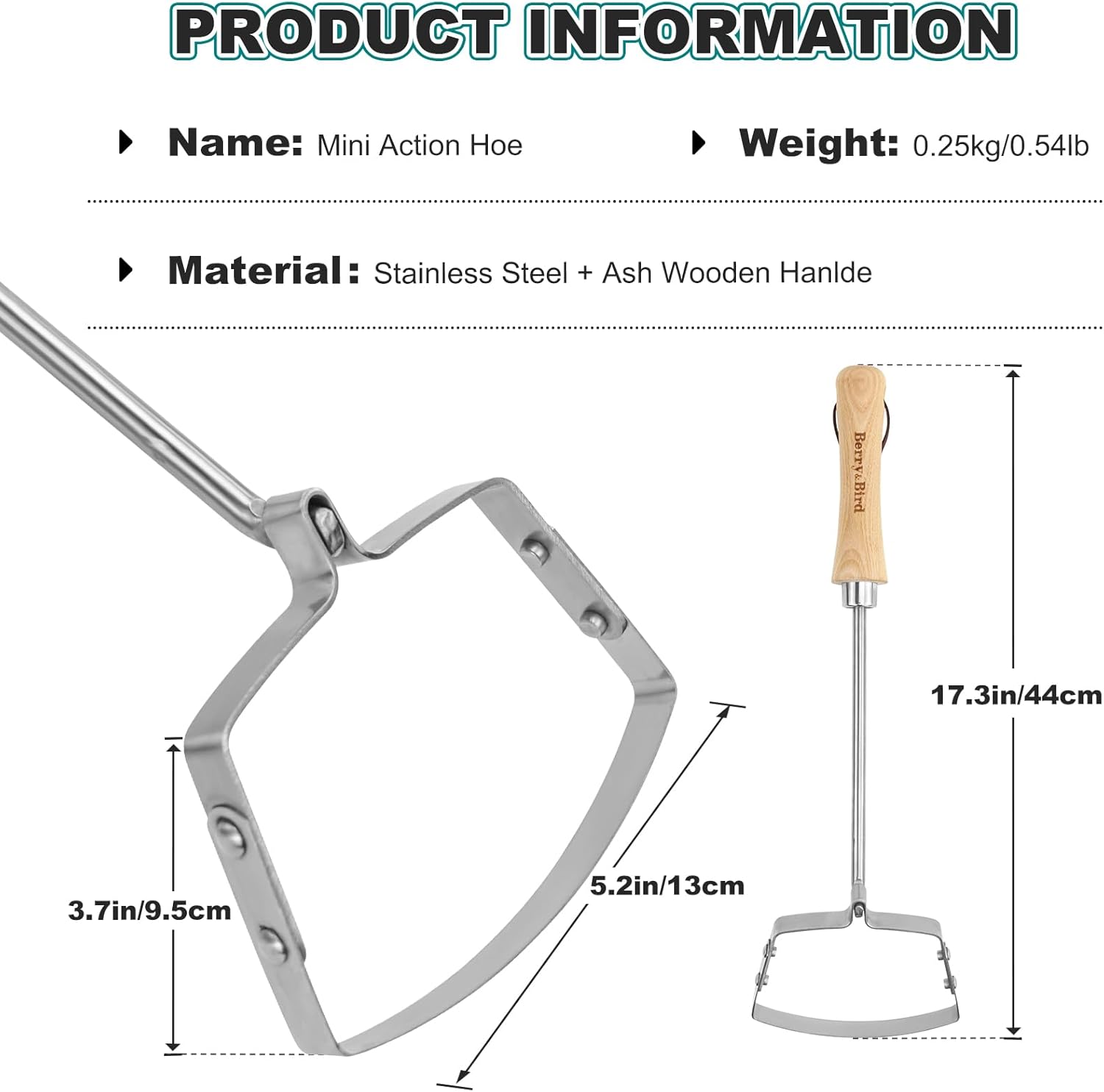 Berry&Bird Mini Hula Hoe for Weeding 17.3''Stirrup Hoe Stainless Steel Weed Puller Tool Gardening Action Scuffle Loop Hoes Garden Tools with Wooden Hand Weeder Cultivator Cutting Roots Loosening Soil