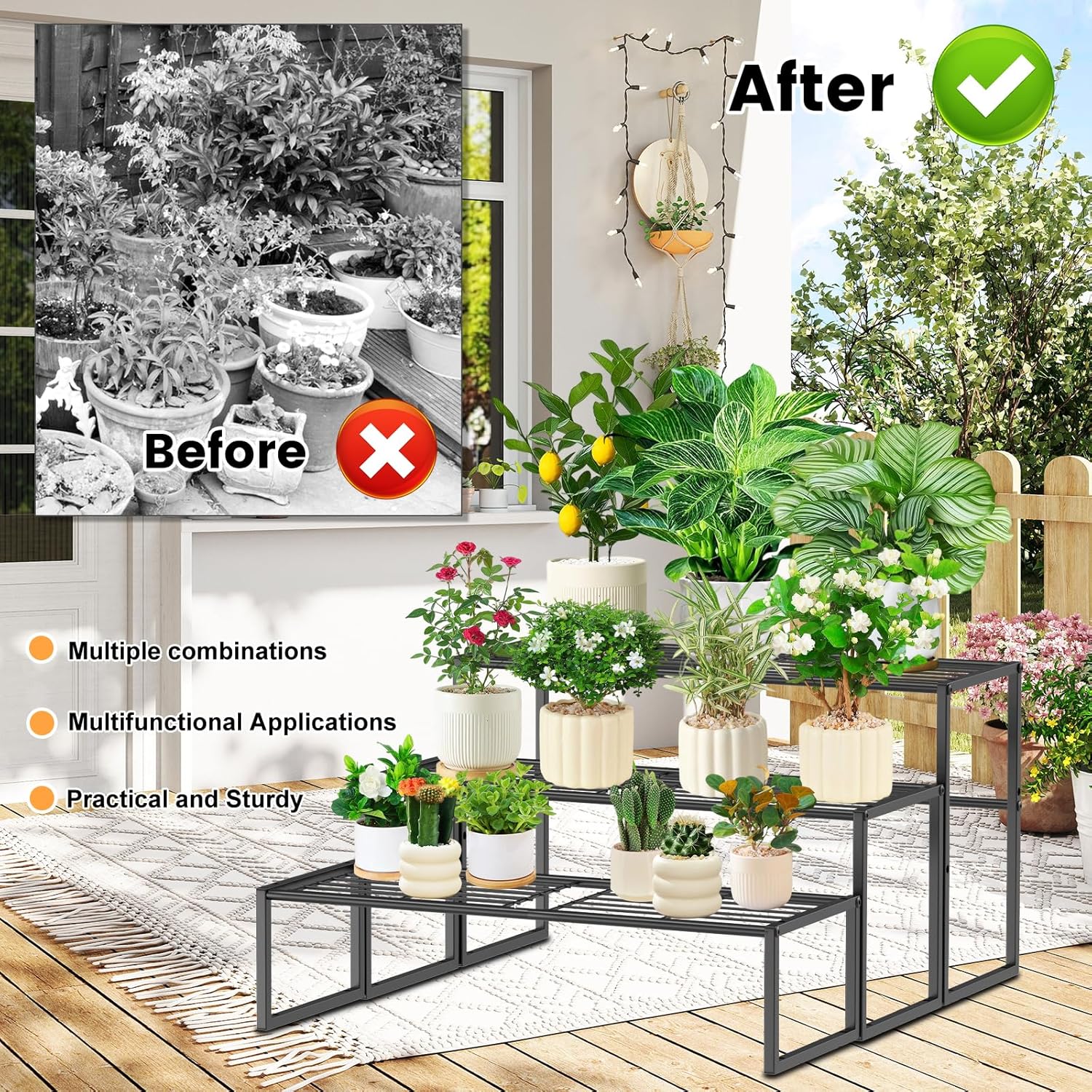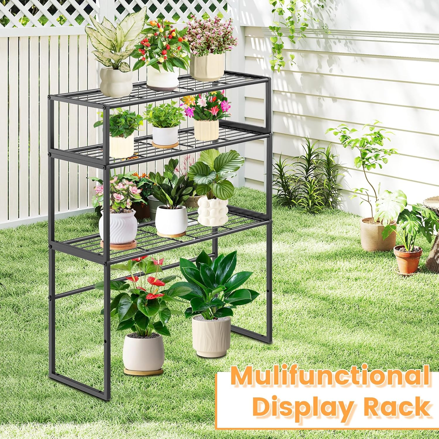 - 【Multi-function Use】 The metal plant stand is stackable & scalable. you can adjust the height and number of layers according to your needs. Meet various needs, the tiered plant stand is suitable for indoor and outdoor use, garden, balcony and other scenes. It can be used as a plant display stand, flower pot stand, decorative stand, storage rack, etc.