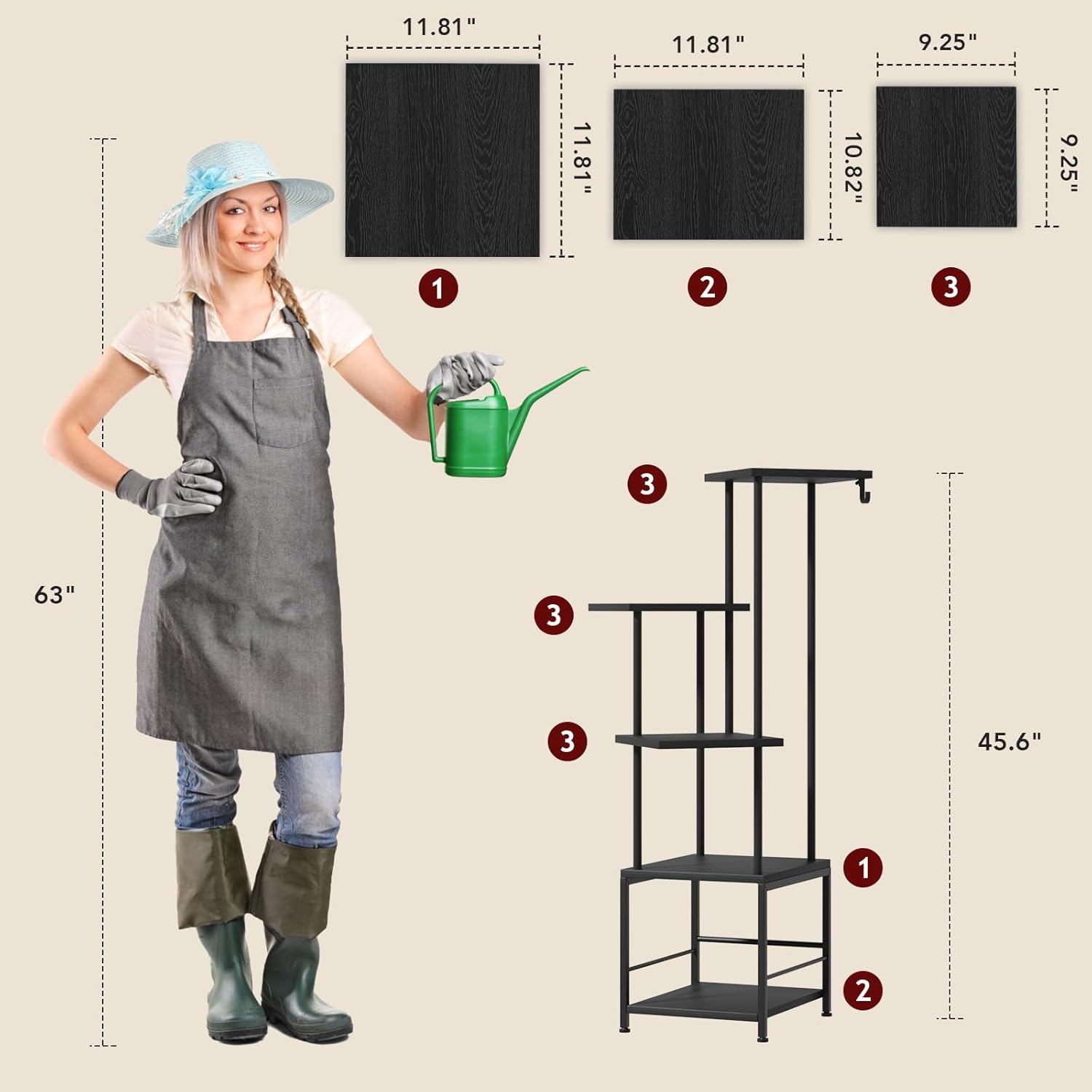 - [Spacious 5 Tiers] This tiered plant stand offers six levels of storage, allowing you to showcase a variety of plants in different heights and styles. The bottom tier features a protective railing to secure pots, while the middle tier includes a side plant holder hook, perfect for hanging baskets. Whether you’re decorating a plant rack indoor or adding greenery to a cozy corner, this stand provides ample space without taking up too much room, making it a must-have for corner plant stands for indoor plants