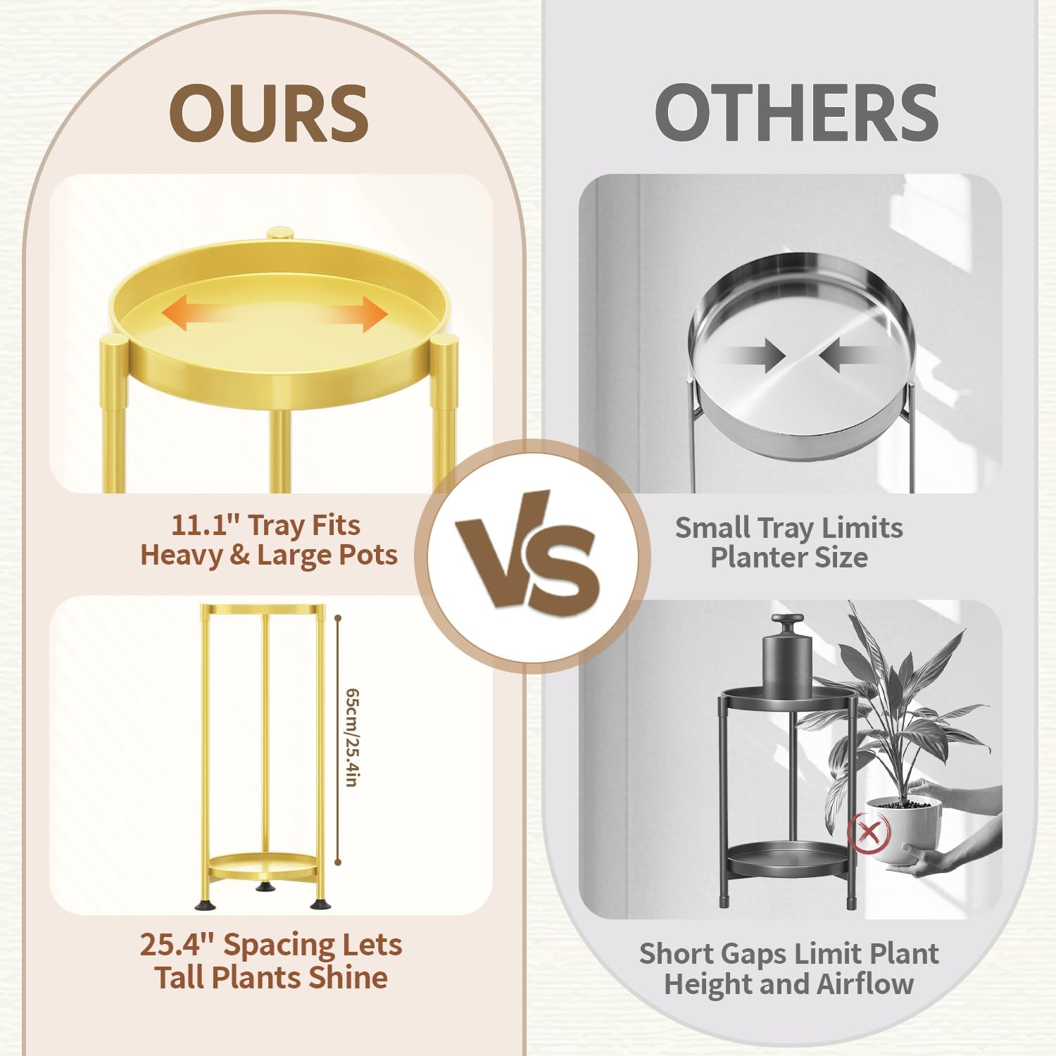 - 【Adjustable Feet for Any Surface】 No need to worry about uneven floors! Our planter stand for indoor plants features three adjustable feet that keep it perfectly balanced, whether it’s on carpet, tile, or hardwood—plus, they also protect your floors from scratches.