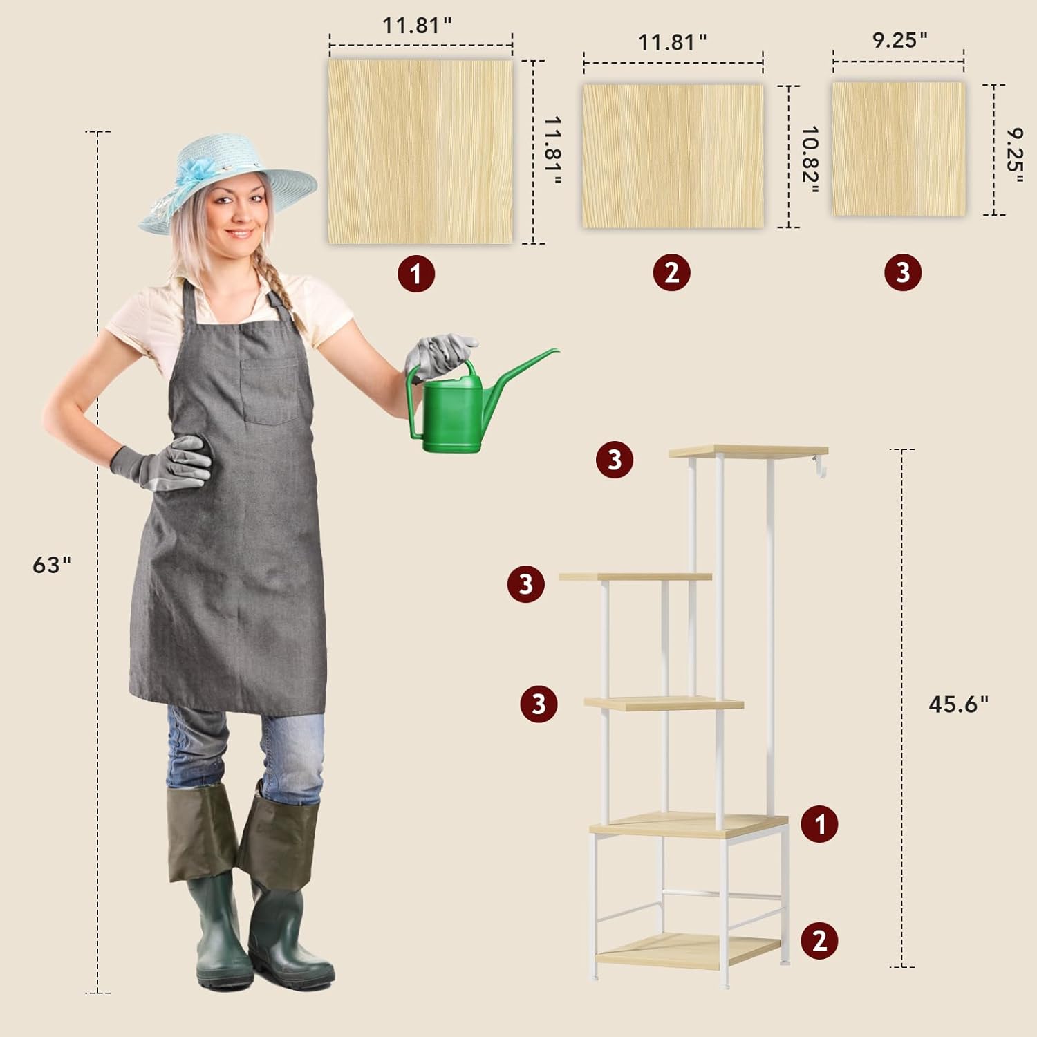 - [Spacious 5 Tiers] This tiered plant stand offers six levels of storage, allowing you to showcase a variety of plants in different heights and styles. The bottom tier features a protective railing to secure pots, while the middle tier includes a side plant holder hook, perfect for hanging baskets. Whether you’re decorating a plant rack indoor or adding greenery to a cozy corner, this stand provides ample space without taking up too much room, making it a must-have for corner plant stands for indoor plants