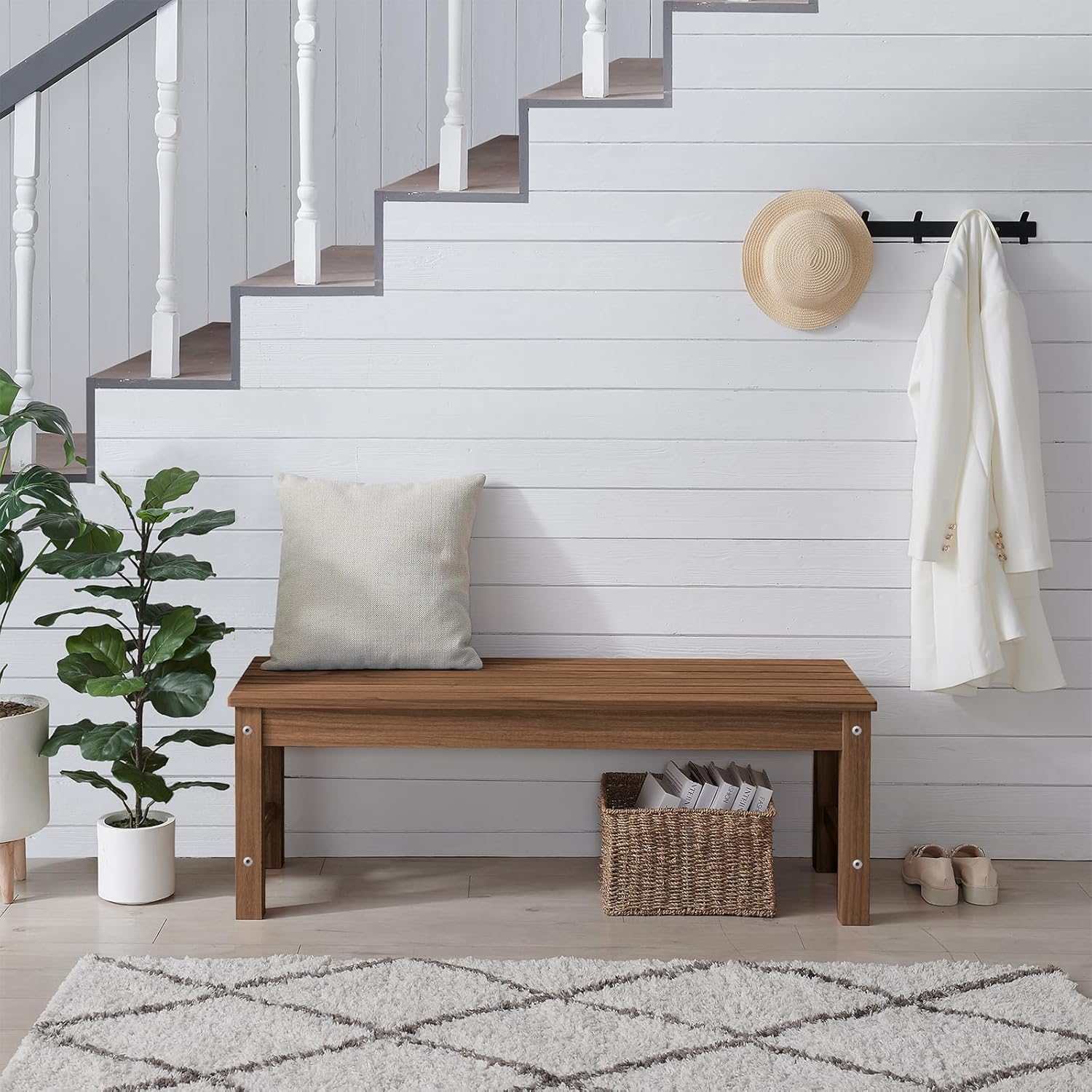 Psilvam 2-Person Outdoor Poly Lumber Patio Backless Bench, Fade-Resistant & Odor-Free Poly Lumber Patio Furniture, Weatherproof, Suitable for Garden, Porch and Park, 700 Lbs Support (1, Light Brown)