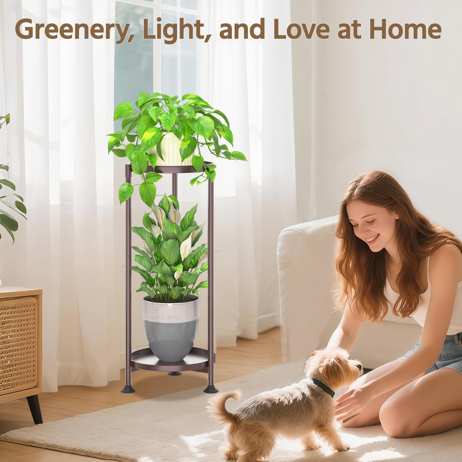 LASZOLA 2 Tier Bronze Plant Stand Indoor for Large Tall Heavy Duty Flower Planter, Metal Vertical Multi Level Rack for Narrow Floor Corner, Sturdy Round Holder Organizer, Modern, Mid Century, Farmhouse