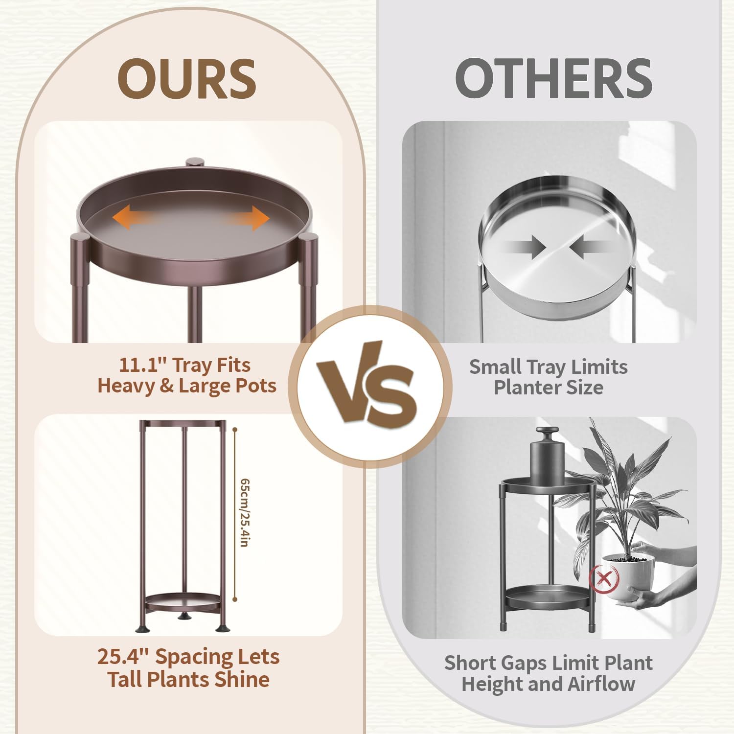 - 【Large Trays for Bigger Plants】Our upgraded 11.1-inch wider trays offer more space than most on the market, giving you plenty of space for larger planters. Each tray can hold over 40 pounds, making it a perfect fit for those hefty cement pots that other plant holders just can't handle.