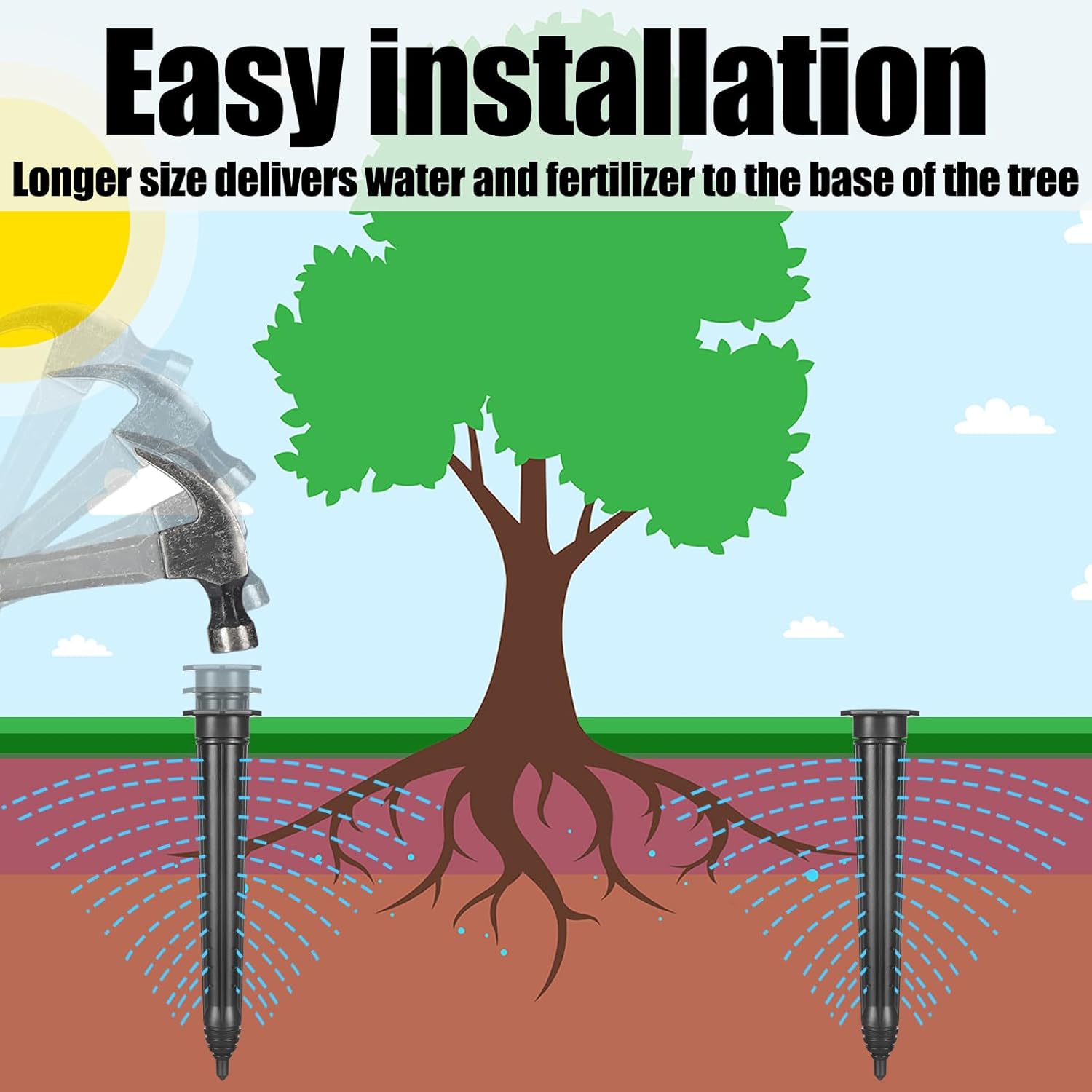- Deep Watering Stake: our watering stake endorses healthy root growth by encouraging trees, shrubs, and bushes to grow roots from the trunk; Deep watering nourishes the plant promoting robust root systems, leading to healthier plants with a solid foundation