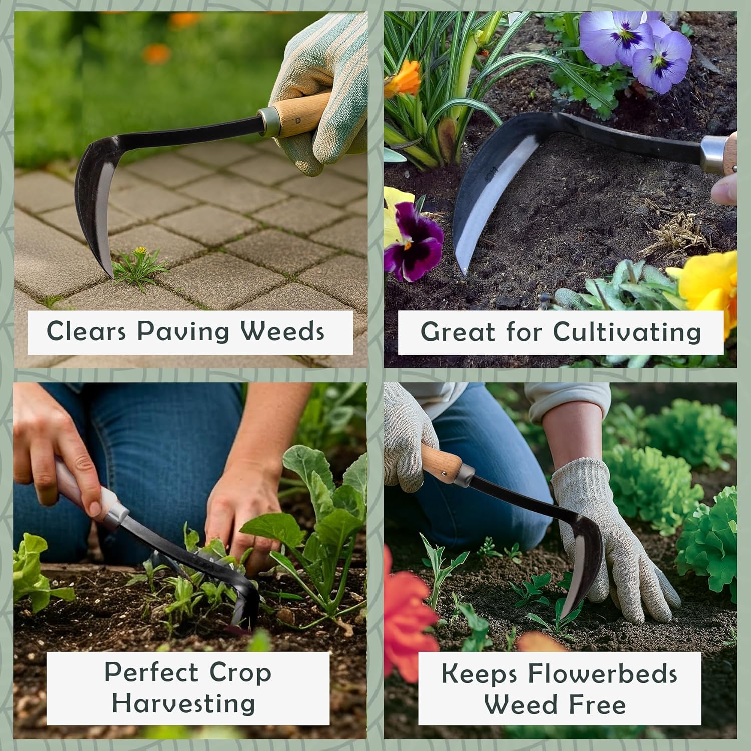 - Durable Craftsmanship with Responsible Harvesting – Features a high-carbon steel blade and solid beechwood handle for lasting use; a must-have weed sickle for your gardening kit.