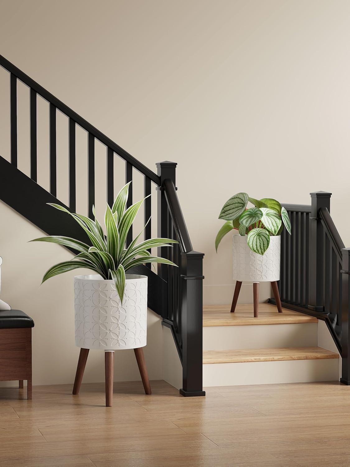 - Wooden leg flower pot: Three high-quality oak legs are very easy to install, just screw the wooden legs into the holes, no tools are required to complete.The triangular structure is more stable and can withstand up to 100 pounds.