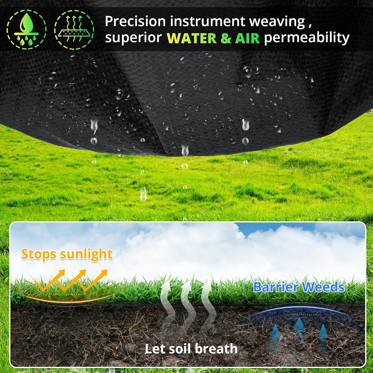 - 【SUSTAINABLE & POLLUTION-FREE】We care about the environment, that’s why we designed our reusable landscape fabric. By utilizing our weed barrier fabrics, you can significantly decrease reliance on herbicides, fostering a greener and more sustainable approach to gardening.