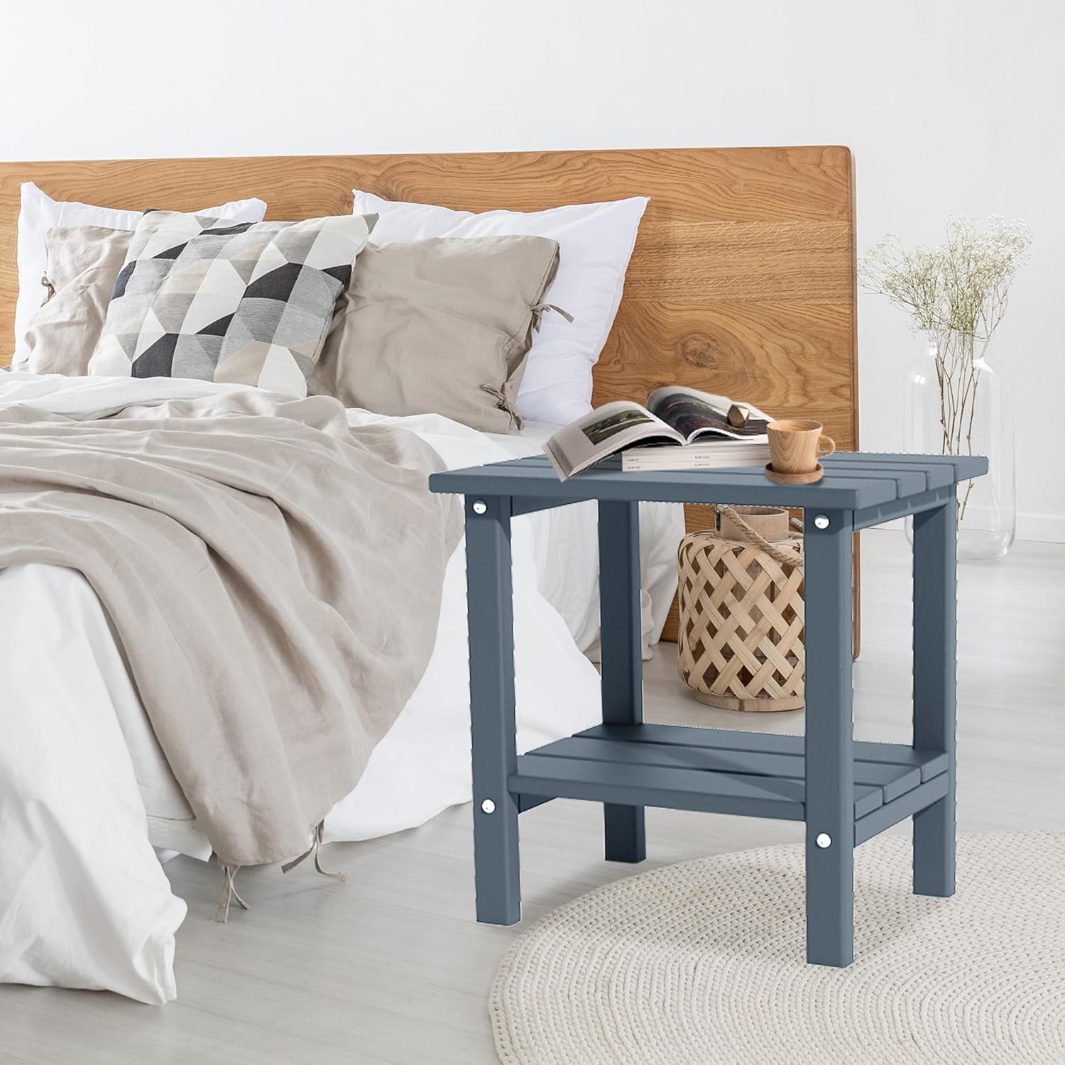 Outdoor Side Table, Weather Resistant HDPE Outdoor Table, 2-Tier Small Patio Tables for Outside or Indoor (Navy Blue)