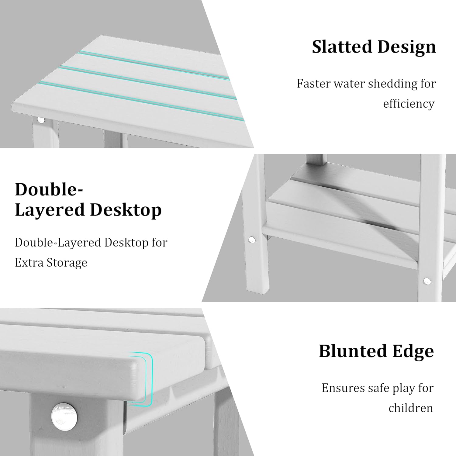 Outdoor Side Table, Weather Resistant HDPE Outdoor Table, 2-Tier Small Patio Tables for Outside or Indoor (White)