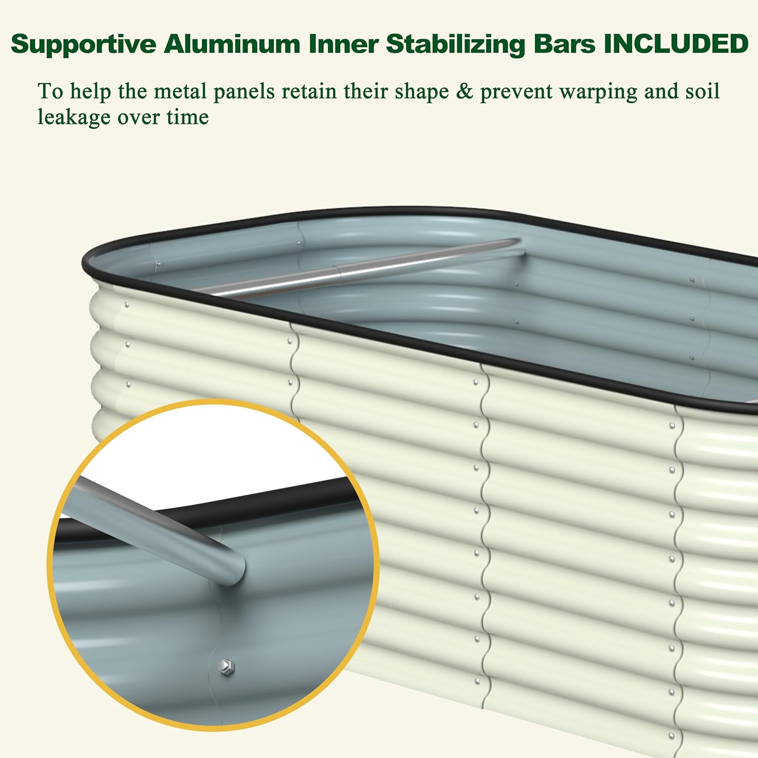 MUPATER 24''H Modular Garden Bed Outdoor for Vegetables, 9-in-1 Galvanized Steel Planter Box with 2 Aluminum Support Rods, 6x3x2FT Raised Garden Bed Kit Oval for Herbs and Flowers, Garden, Beige