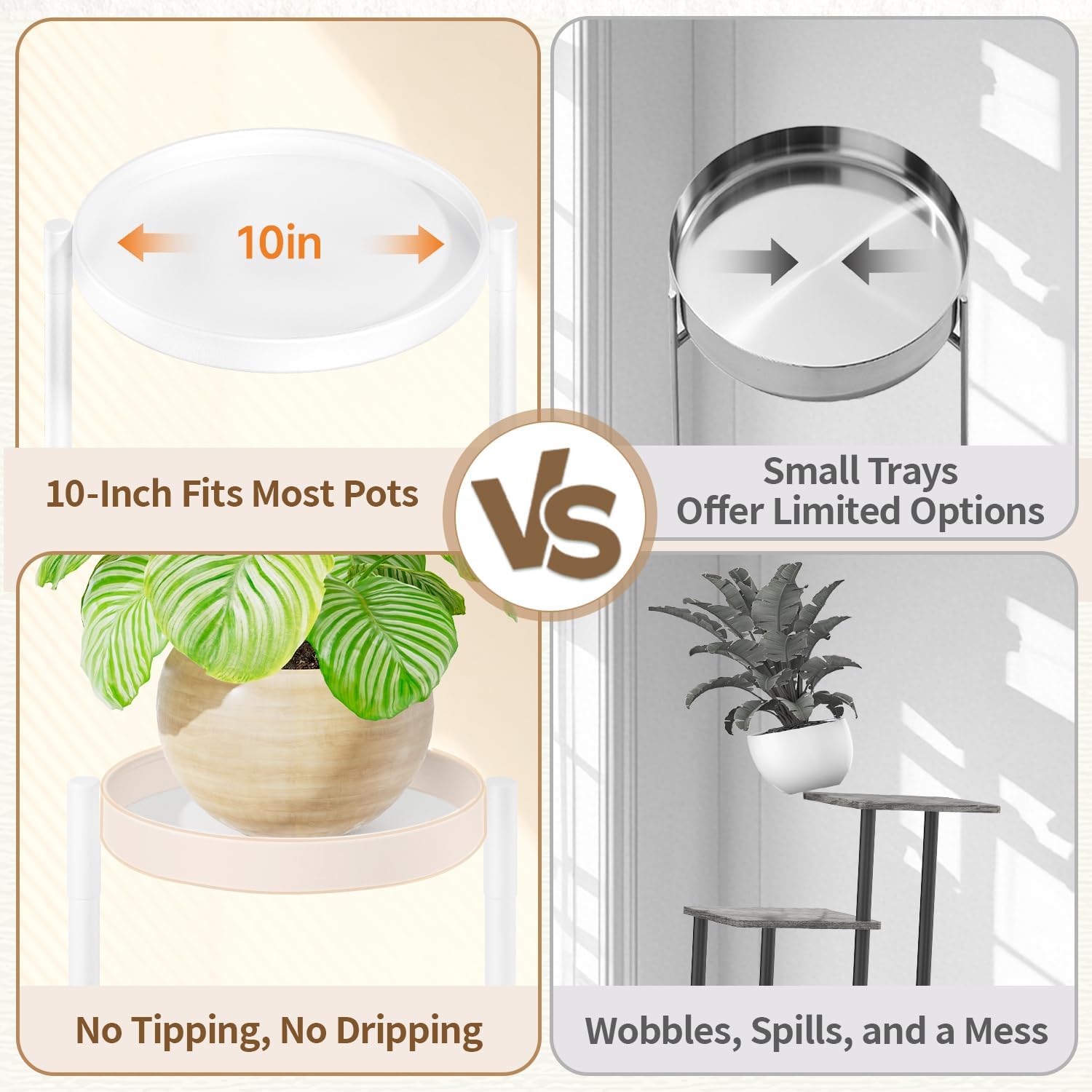 - 【Perfect Home for Big Pots】Say goodbye to the frustration of finding the right spot for your big and heavy flower pots. The newly upgraded 10-inch tray provides the perfect home they deserve. It gathers them into one beautiful display, raised for better sunlight and more convenient care.