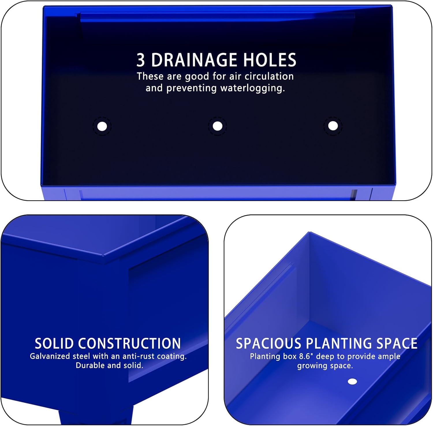 Raised Garden Bed with Low Profile Design Metal Planter Box for Growing Fresh Herbs Vegetables Flowers Succulents&Other Plants for Outdoor Backyard Patio Deck Balcony Blue