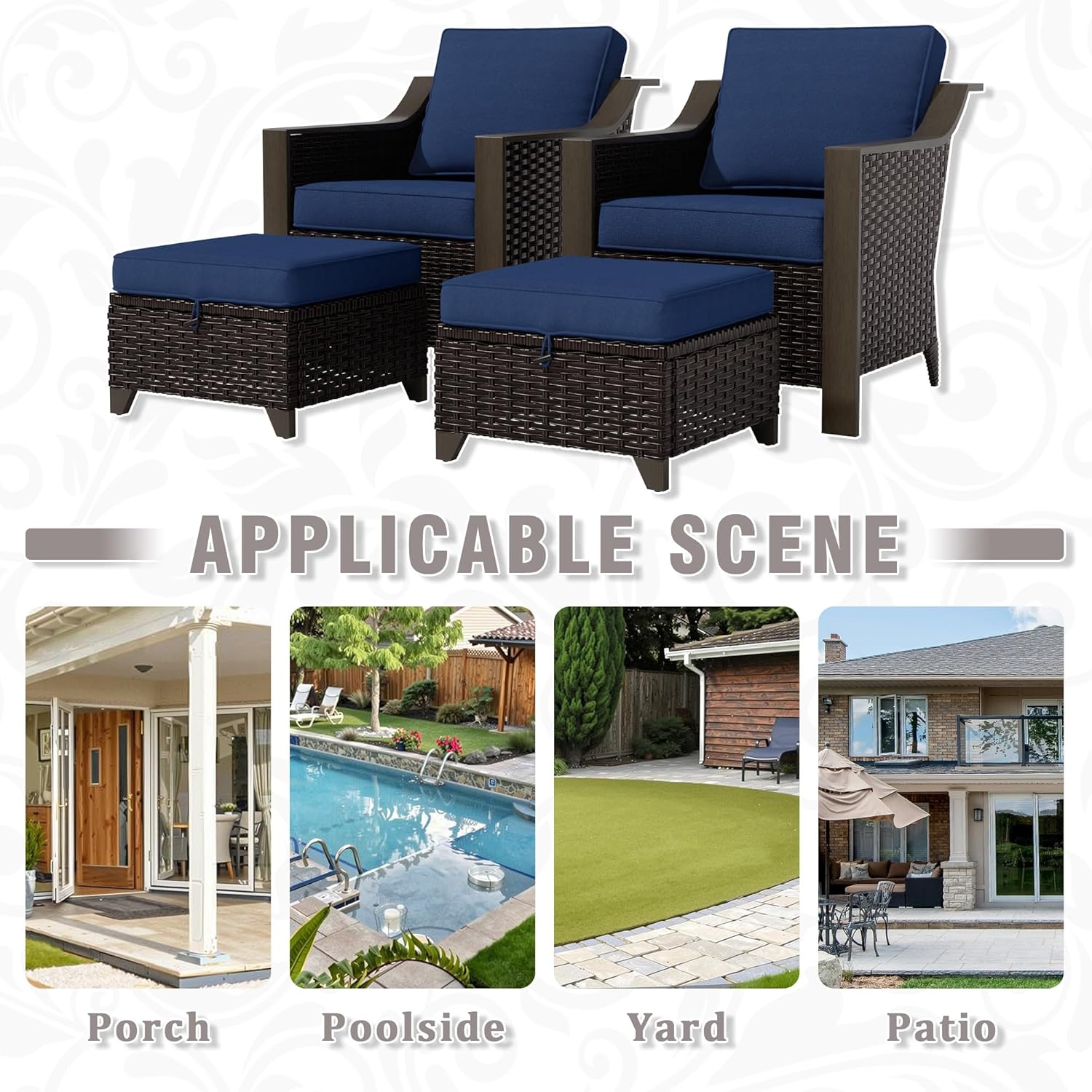 - Versatile Outdoor Use β Ideal for decks, patios, gardens, balconies, or even indoor spaces. Mix-and-match with optional ottomans for a complete setup.