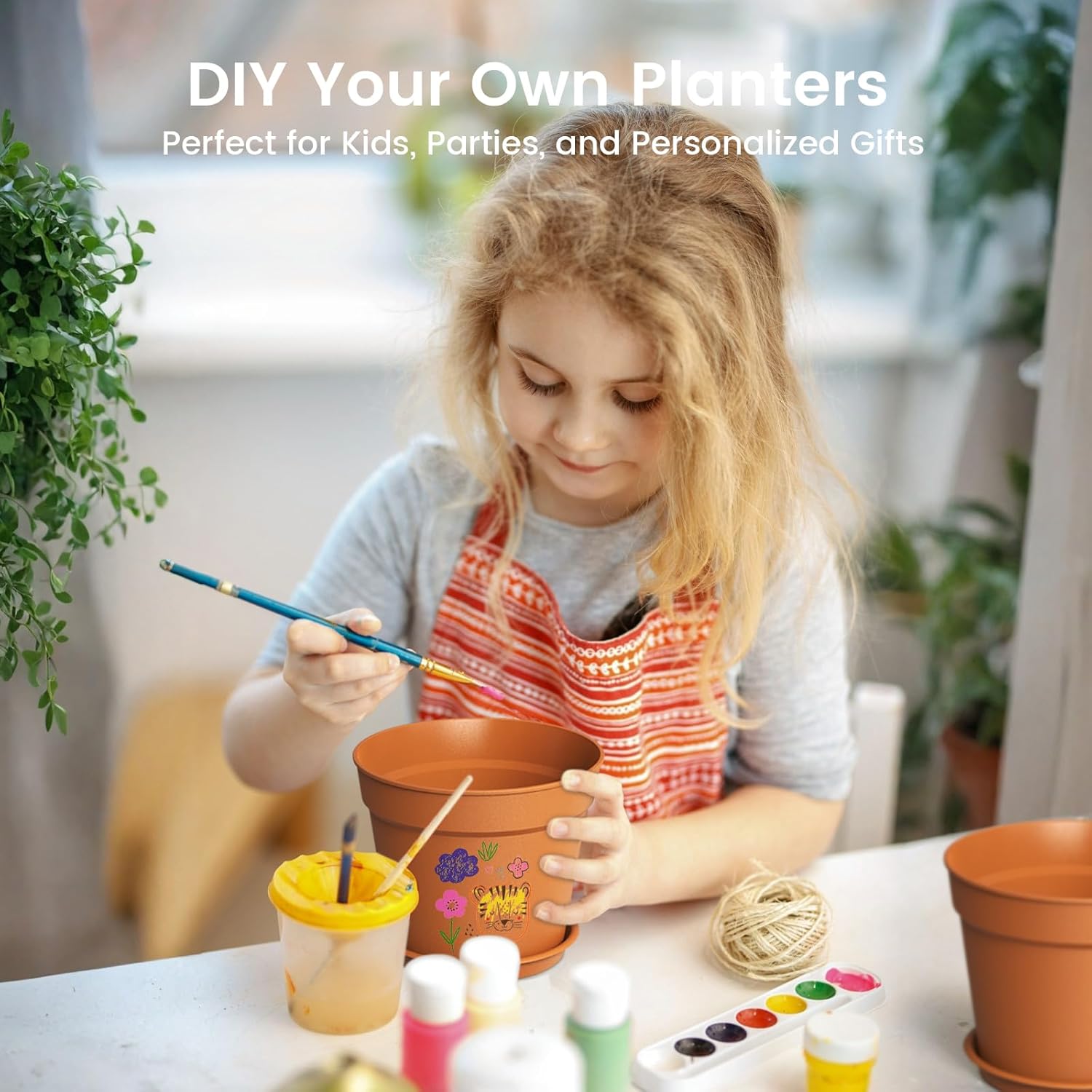 20 Pack 6 Inch Plant Pots with Drainage and Saucers, Plastic Flower Pots for Indoor and Outdoor Plants, Stackable Nursery Planters for Houseplants and Herbs, Terracotta