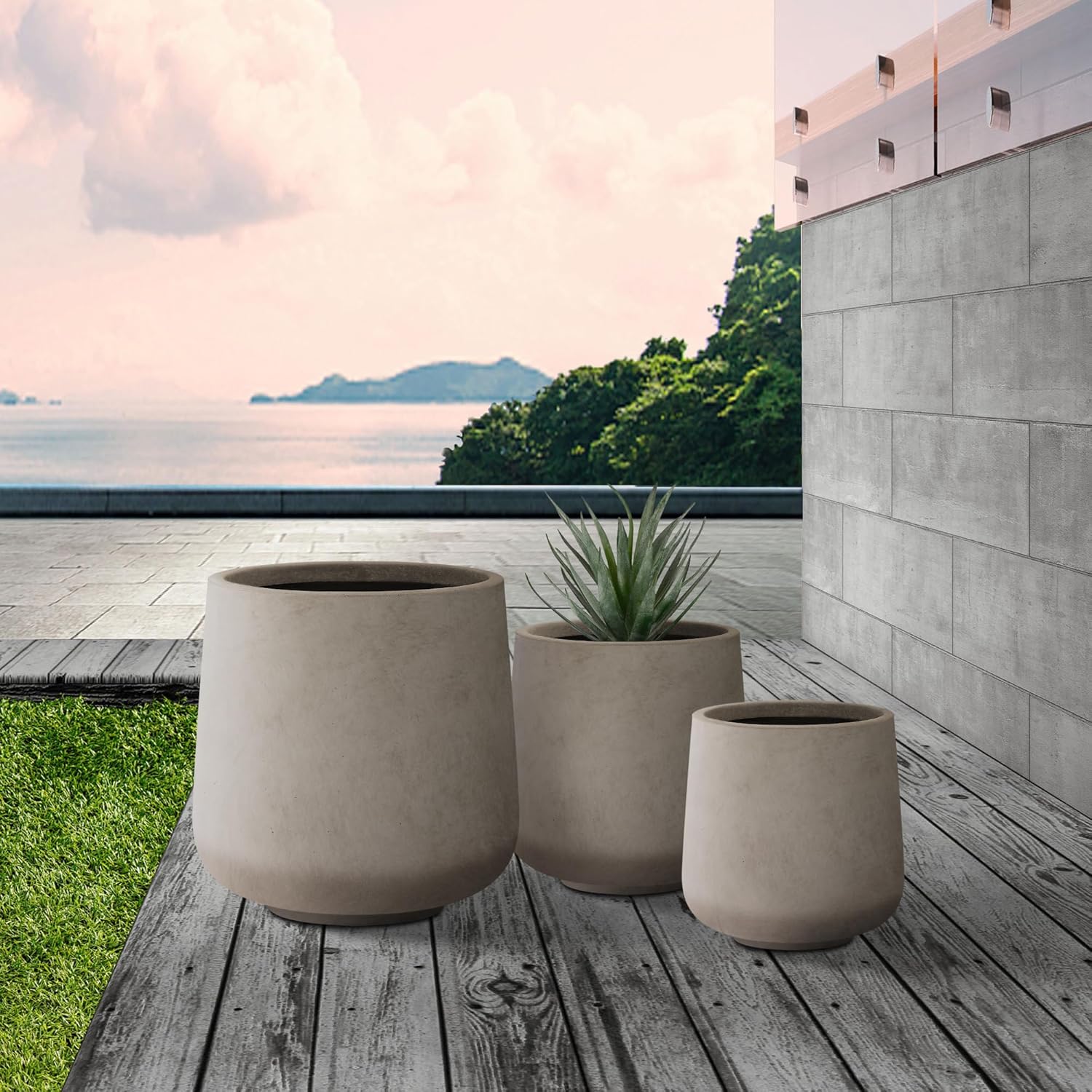 Kante 15.3"+11.6"+8.2" Dia Round Concrete Planter, Large Outdoor Indoor Planter Pots Containers with Drainage Holes and Rubber Plug for Home Garden Patio, Buff Concrete
