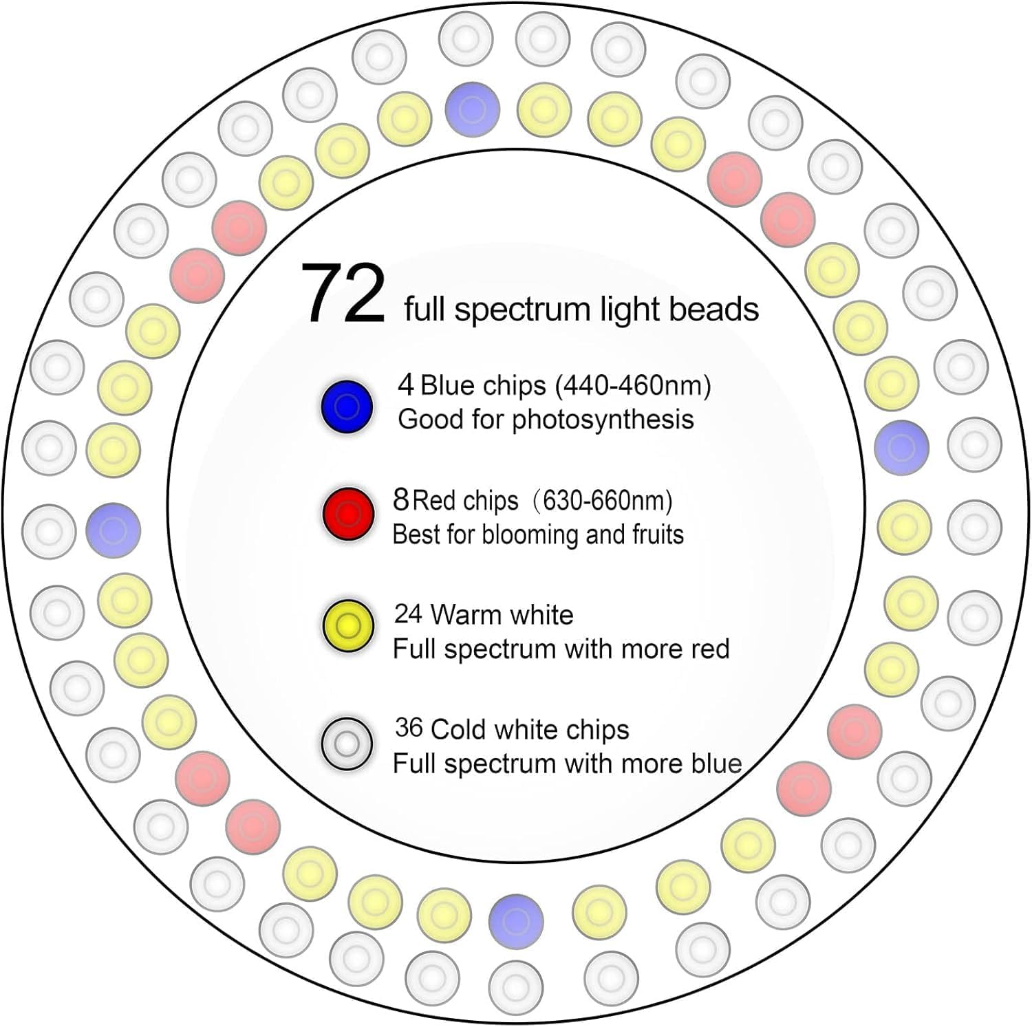 - Frees up window sills and brightens living areas:It emits all the wavelengths from 380nm to 780nm- just like natural sunlight. With the warm white high efficiency LED diodes & higher PAR output, the grow light greatly promotes indoor growth as it accelerates photosynthesis.