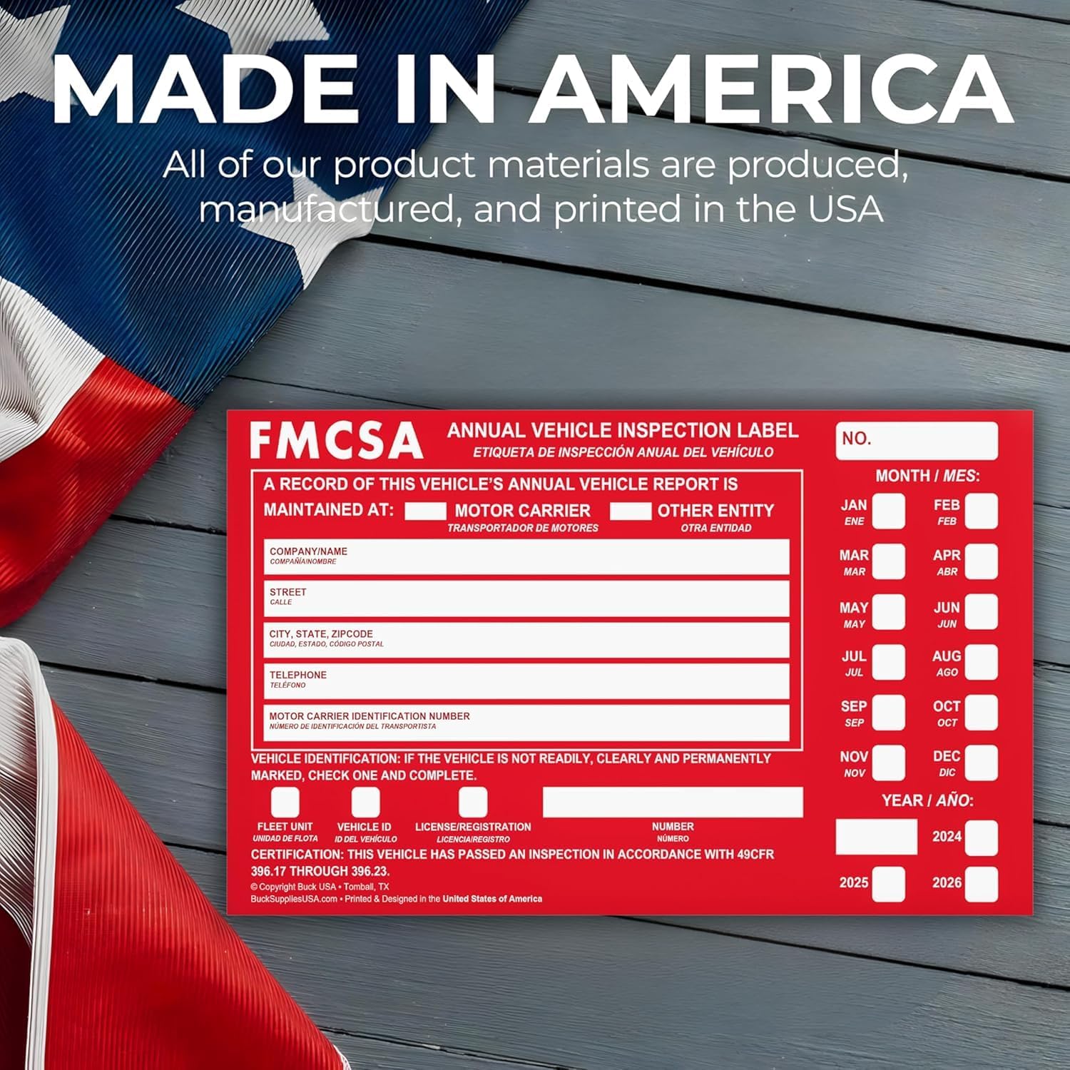 25 Pack Buck Aluminum Annual Vehicle Inspection Label with Punch Boxes, 2 Mil Red FMCSA Self Adhesive Sticker, DOT Compliant, Weatherproof, Tear Resistant, Easy to Write On, 6" x 3.5" - Made in USA