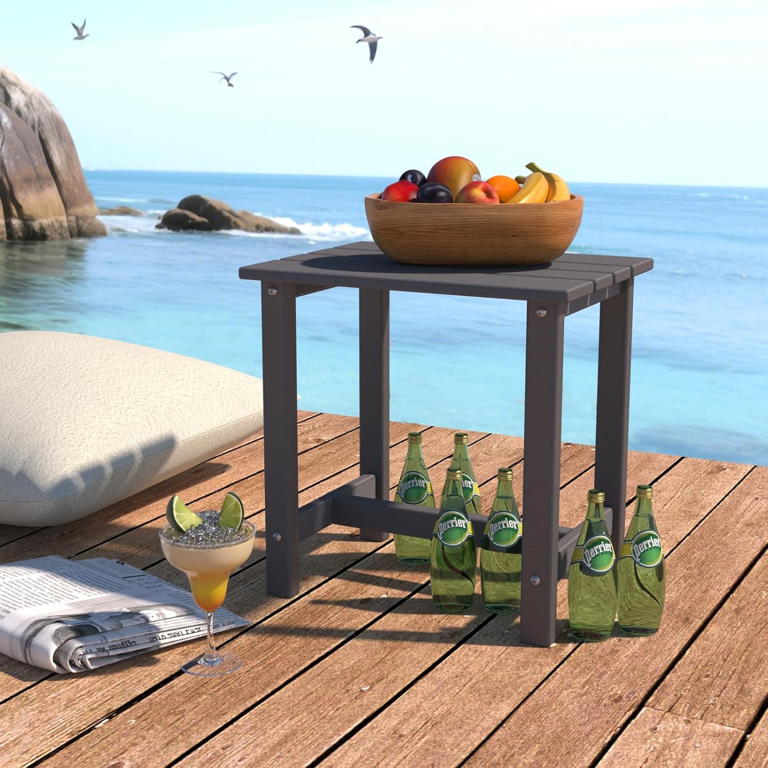 Adirondack Outdoor Side Table, Weather-Resistant/Easy Maintenance Patio Side Table for Backyard, Pool & Porch, Patio End Table Durable & Stylish, 1-Tier, Grey