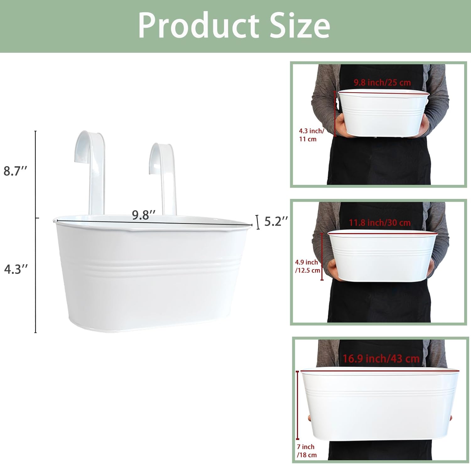 - Perfect Size for Railings & Fences: This deck planter for railing measures Top: 9.8" x 5.1", Bottom: 8.3" x 3.9", Height: 4.3". It fits most patio railings, fences, and balconies, making it ideal for herb planters outdoor or small flowers