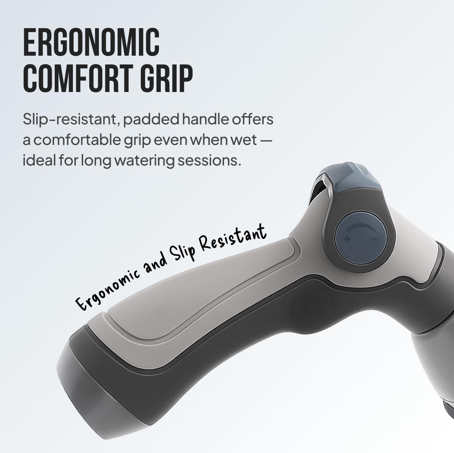 - THUMB-CONTROL WATER FLOW – Effortlessly adjust water pressure with your thumb. No trigger to squeeze, no hand fatigue — ideal for seniors or extended use.
