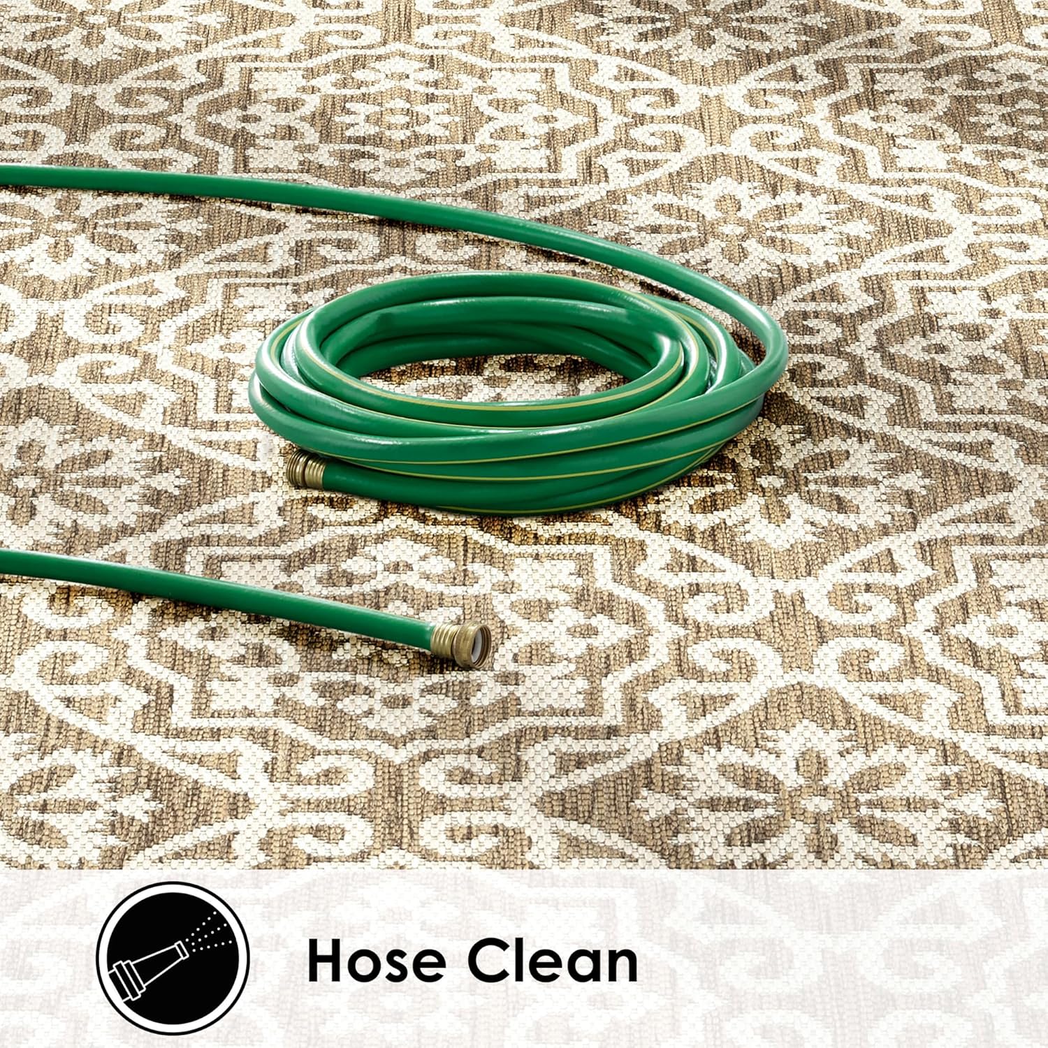 Nicole Miller New York Patio Country Julia Transitional Geometric Indoor/Outdoor Area Rug, Brown/Beige, 5'2"x7'2"