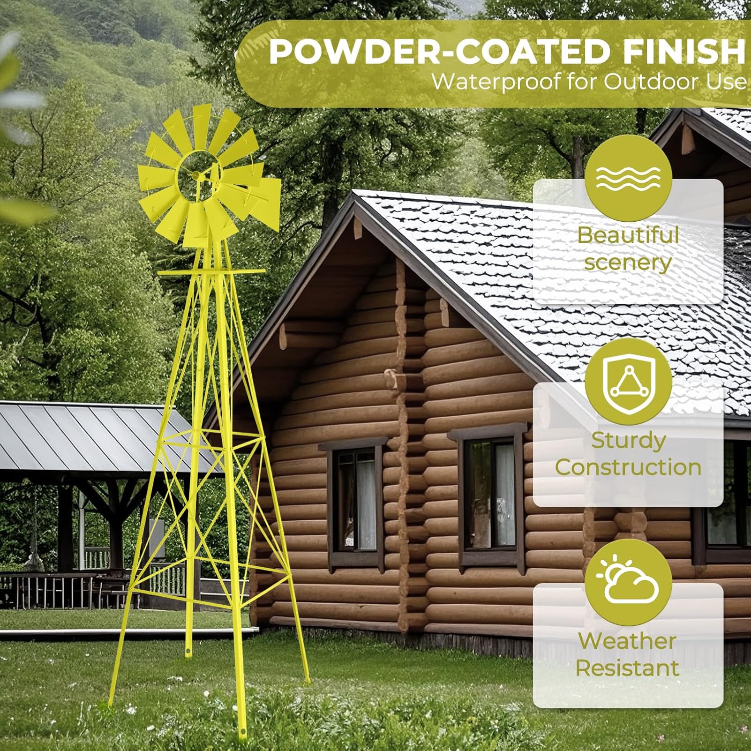 Outvita 8FT Ornamental Windmill for Yard, Heavy Duty Durable Metal Weather Vane Garden Decoration Weather Resistant for Garden, Farm, Seaside