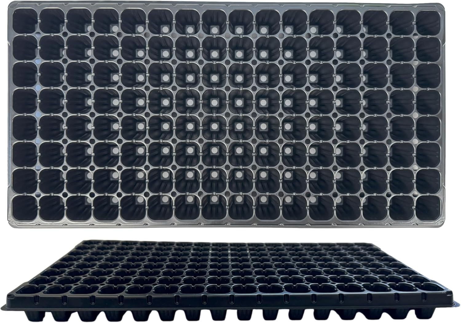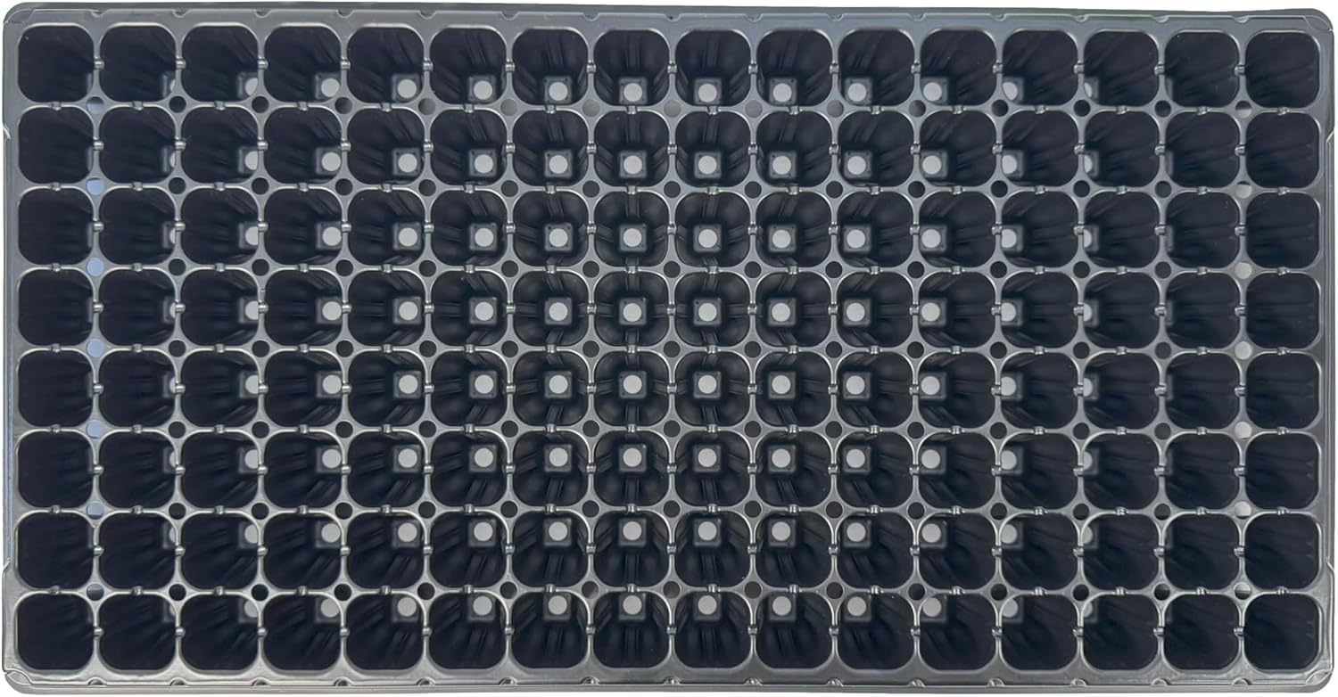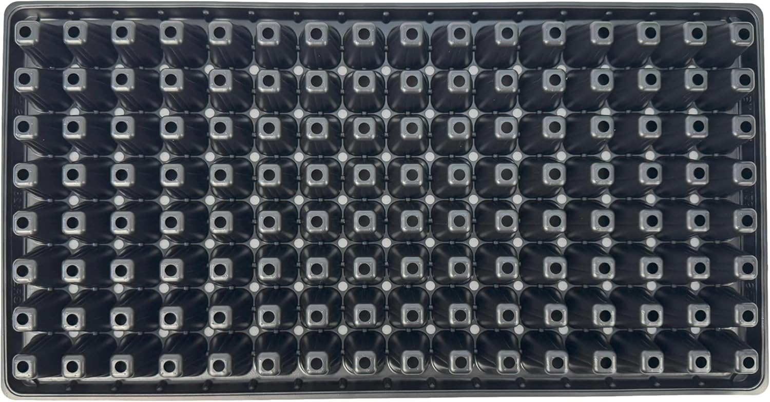 - 128 Cell Matte Black Tray โ each cell is 1.57" deep and 1.1" open and holds 18cc of soil for organized seed starting and optimal germination.
