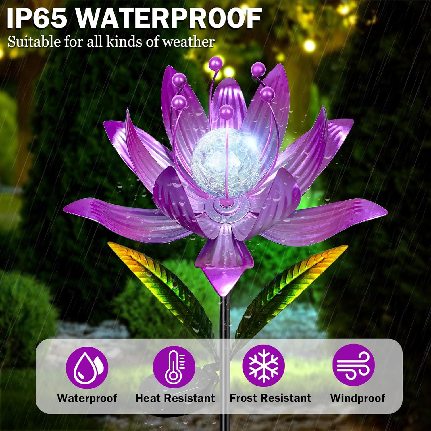 - 【 Colorful Wind Spinner 】Designed according to the shape of lotus flower, wind spinners outdoor is made of sturdy metal structure and exquisite welding technology. The surface is coated with rust-resistant graphic layer, which can prevent the metal from rusting and fading.