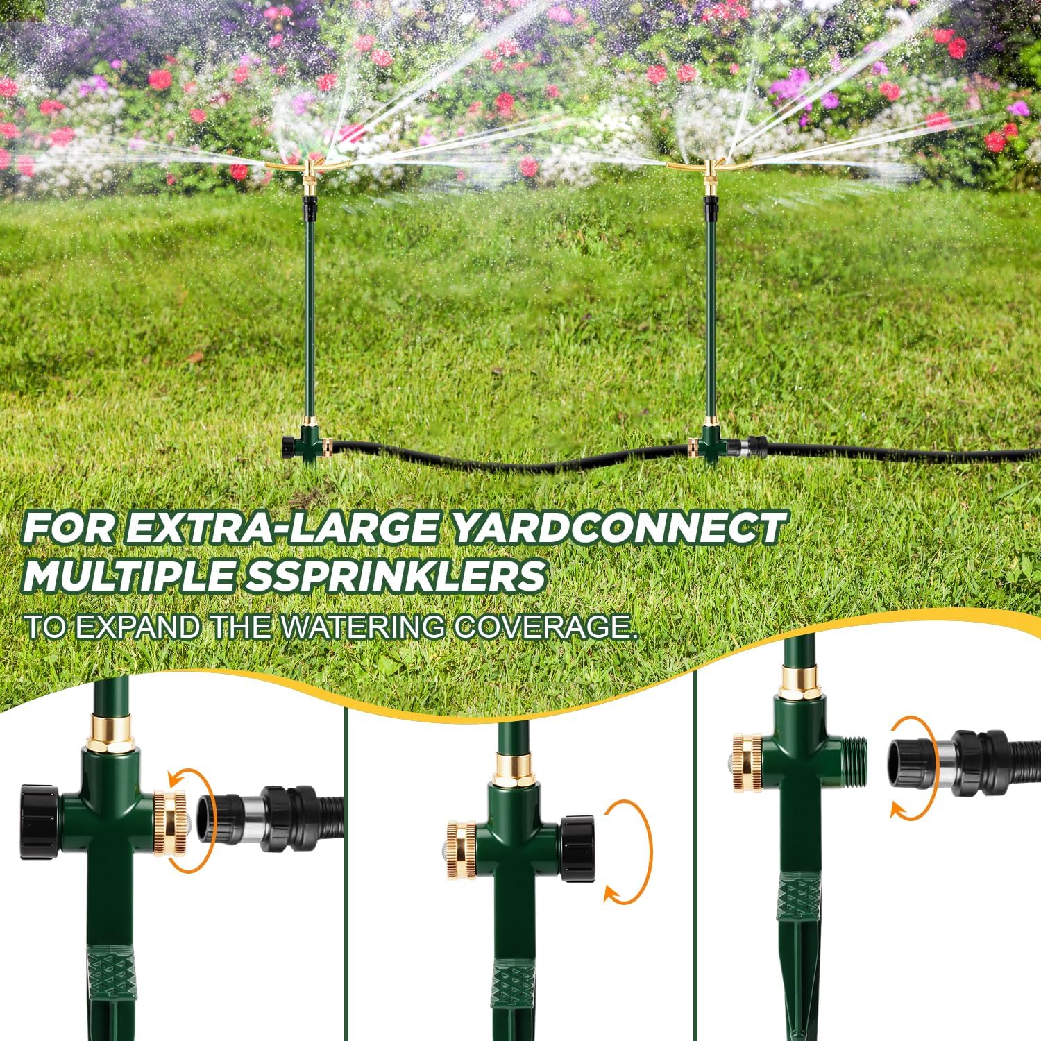 - Efficient 360° Rotating Sprinklers: The Feeloco 3-Arm Garden Sprinkler features 360-degree rotating heads for even water distribution, ideal for yard and large area coverage