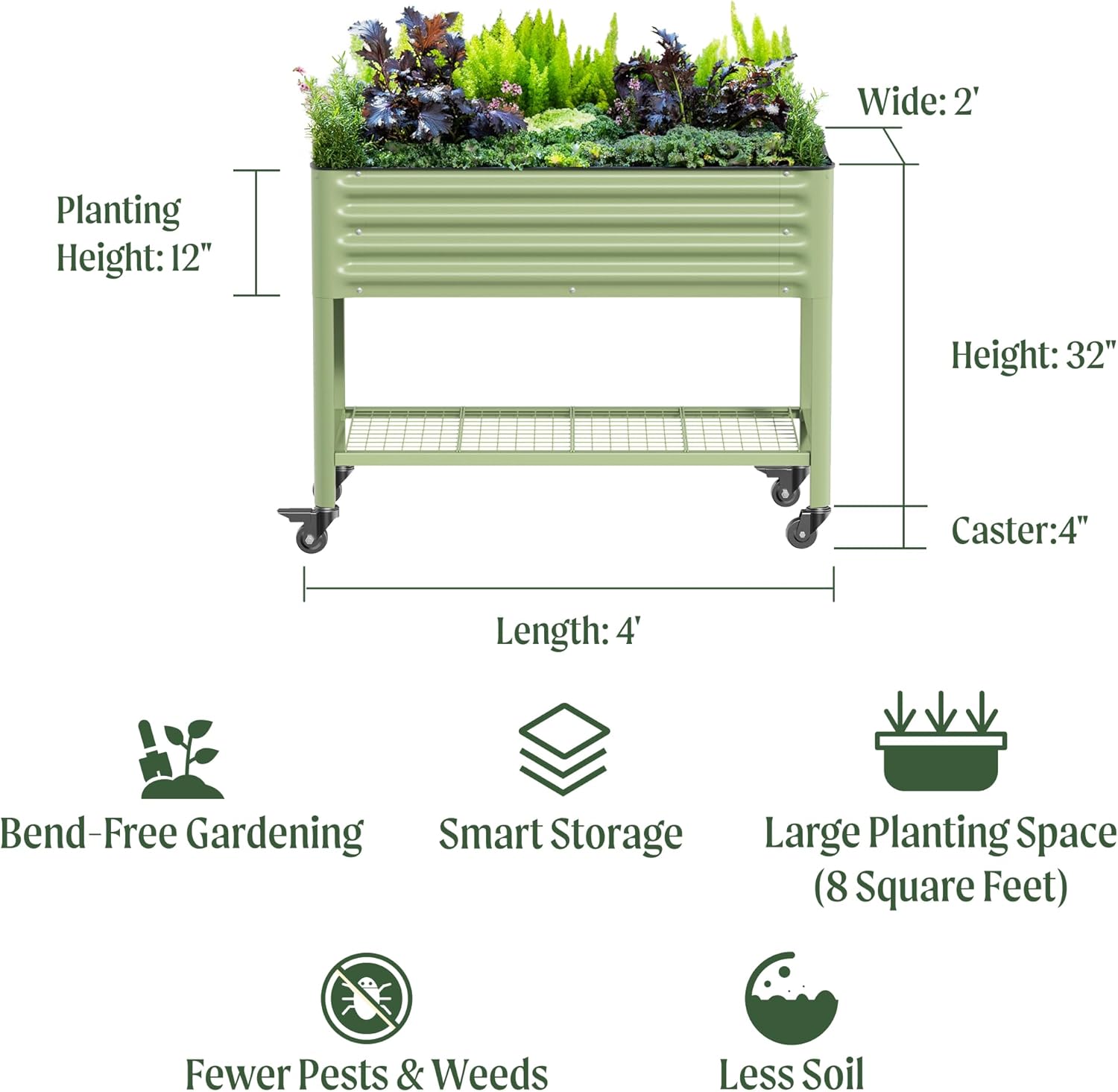 Rolling Elevated Raised Garden Bed-V Series, 2' x 4' Garden Beds with Legs & Storage Rack for Patio & Porch, 700 Lbs Weight Capacity, Outdoor Planter Box for Vegetables Flower Herbs, Olive Green