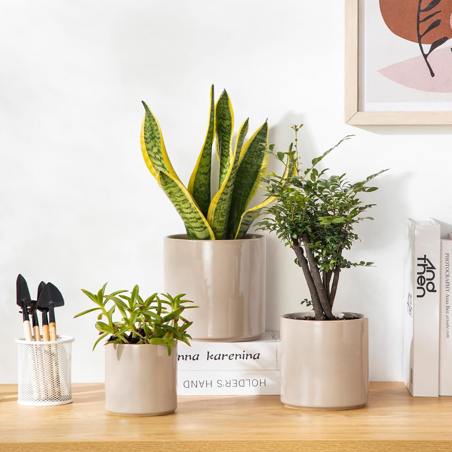 - 【Ceramic Plant Pots】 This set includes three beautifully crafted ceramic flower pots in 4, 5, and 6-inch sizes, perfect for growing a variety of plants and flowers.