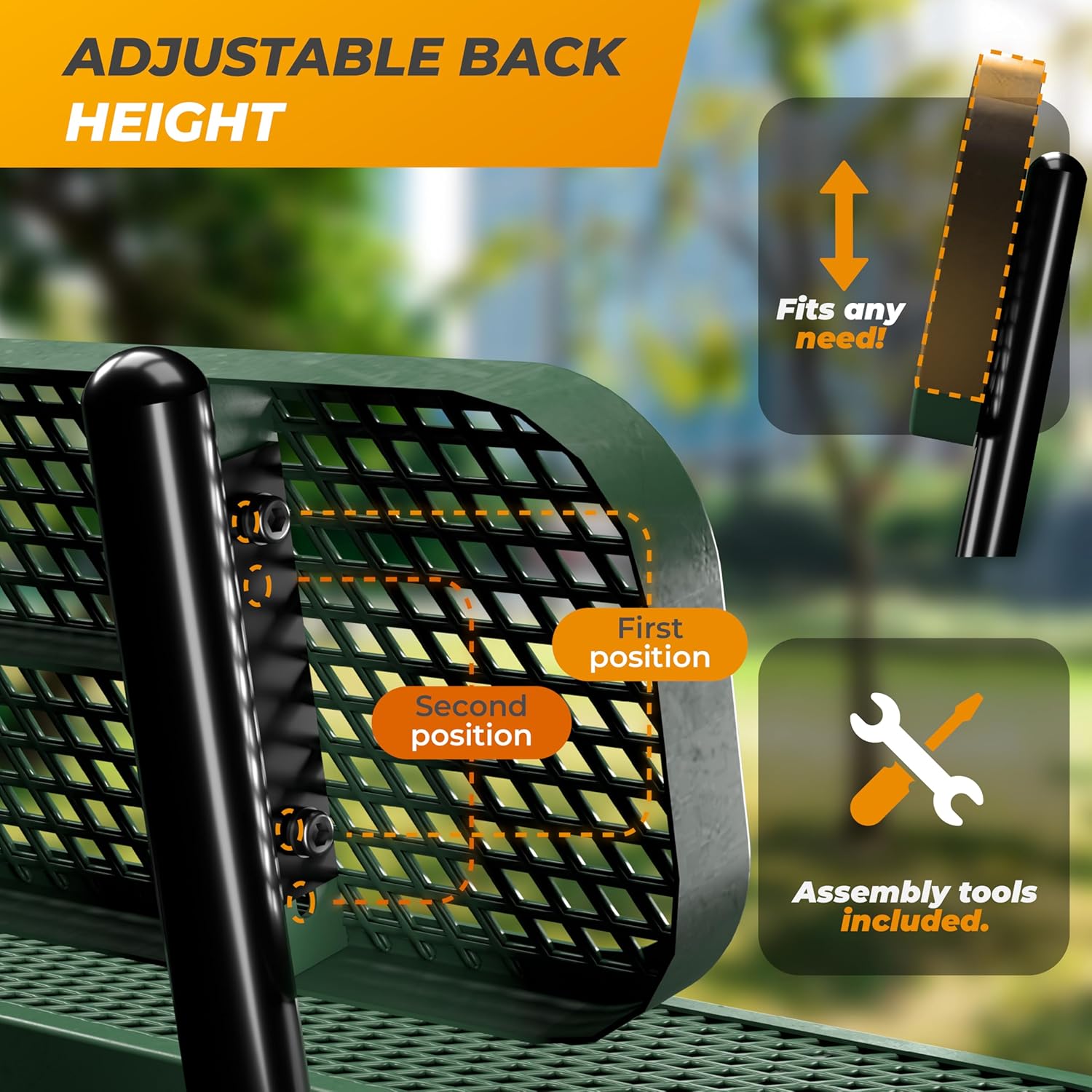 - Weather-Resistant & Easy to Maintain: Commercial-grade steel with thermoplastic coating, black powder finish, diagonal reinforcement bars, and industrial legs resists rust, corrosion, and UV damage year-round.