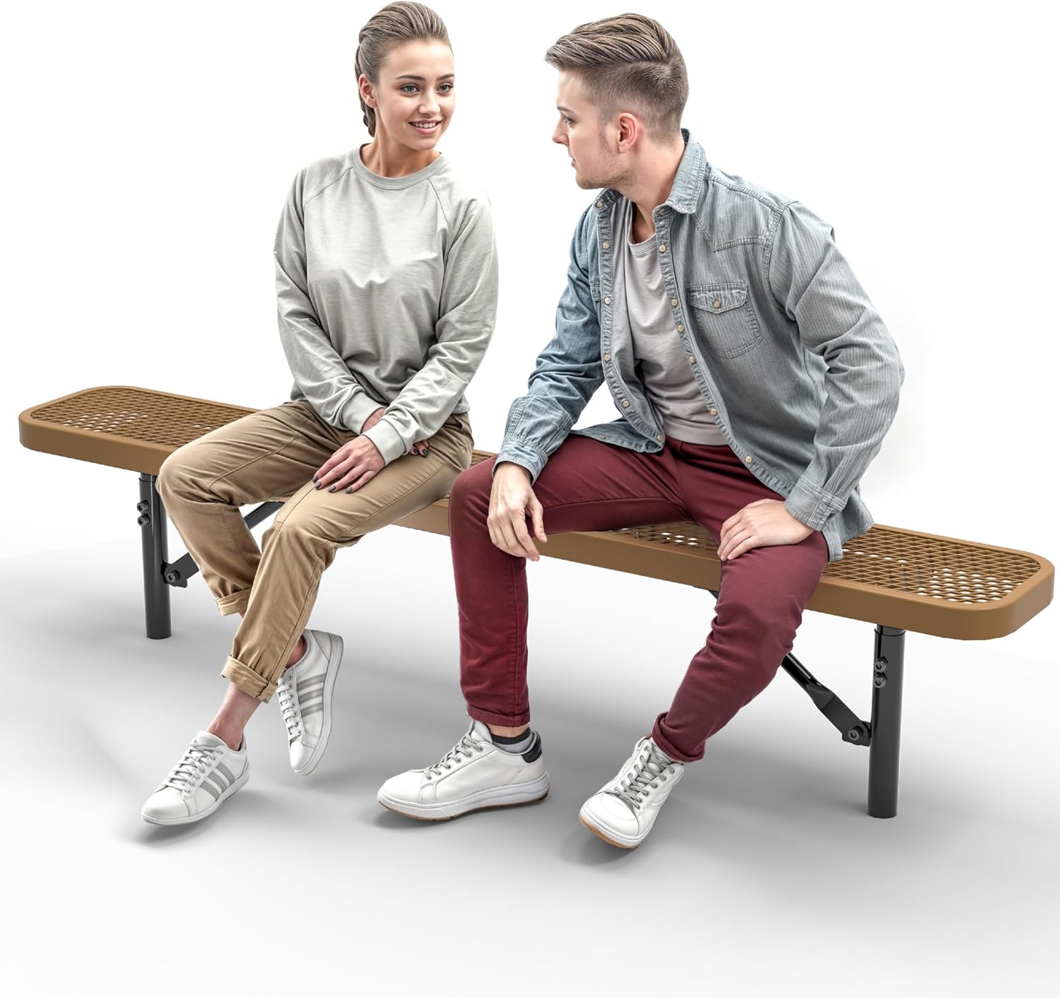Heavy-Duty Outdoor Metal Bench, Thermoplastic-Coated, Inground, Weatherproof, Commercial-Grade for Parks, Gardens, Patios, Stores & More (6 Ft - Inground, Brown)