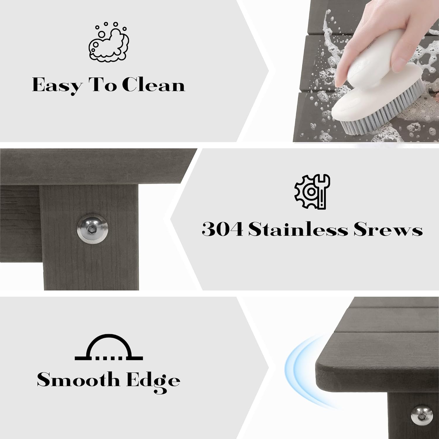 Outdoor Side Table, Small Adirondack Side Table for Adirondack Chair - Indoor Outdoor End Table - HDPS (Grey)