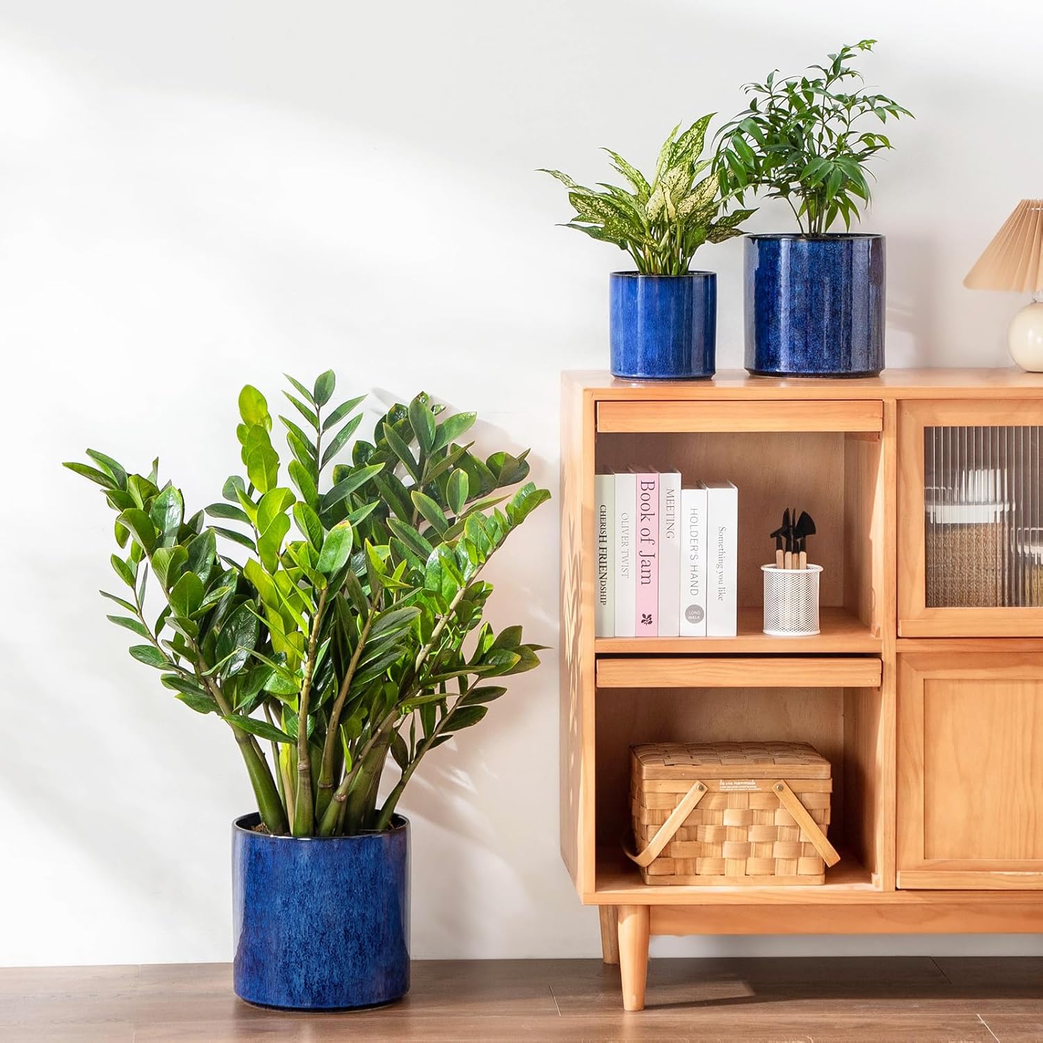 vancasso 6"+8"+10" Ceramic Pot for Plants, Large Outdoor Indoor Planter Pots with Drainage Holes, Set of 3, Blue