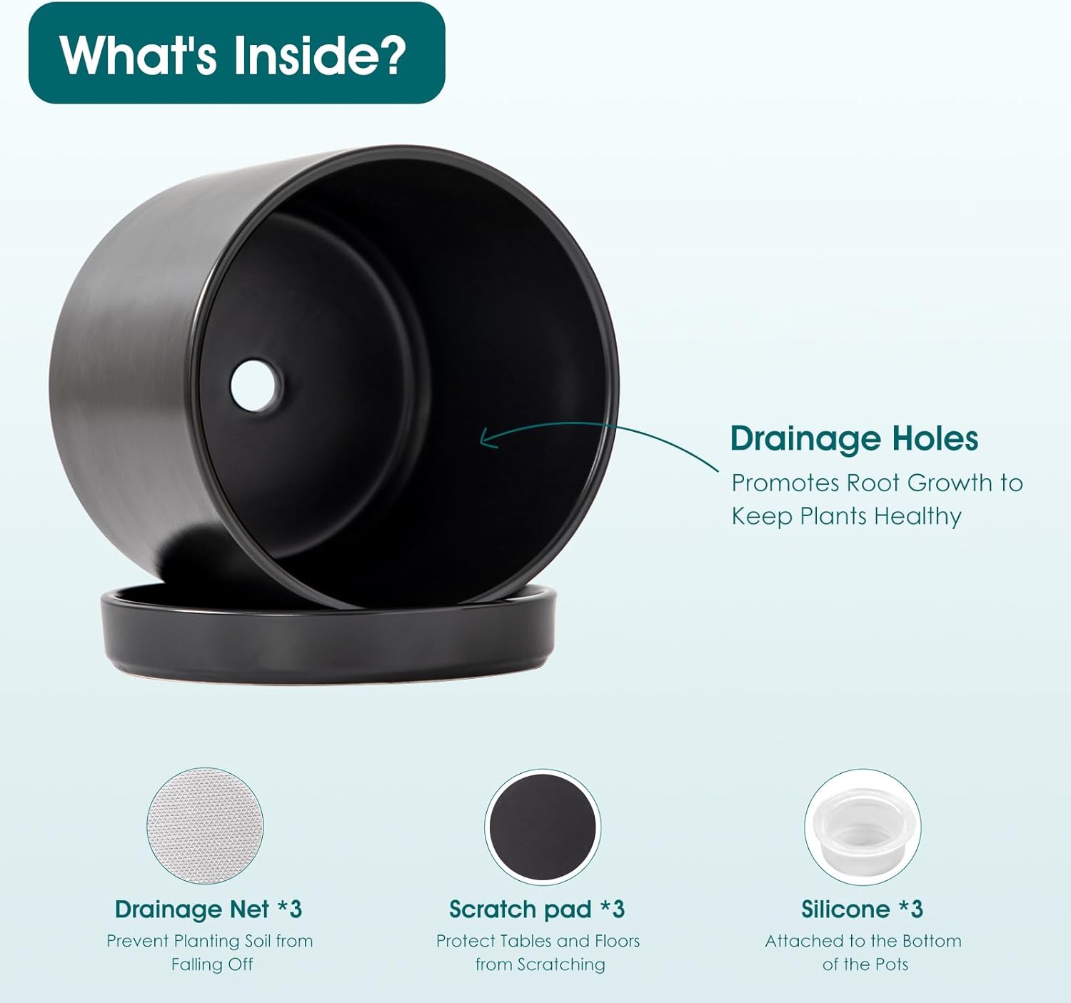 - 【Drainage Holes and Trays】This plant pots indoor with drainage paired with leak-proof mesh pads to efficiently remove excess water, prevent soil loss, and avoid waterlogging. The tray collects drained moisture, keeping surfaces dry, while the design promotes healthy root growth—ideal for flowers, pothos, monstera, africa violet, snake plant ,money tree and small tree sapling, etc (Note: Tray is attached to the bottom; plant is not included.)