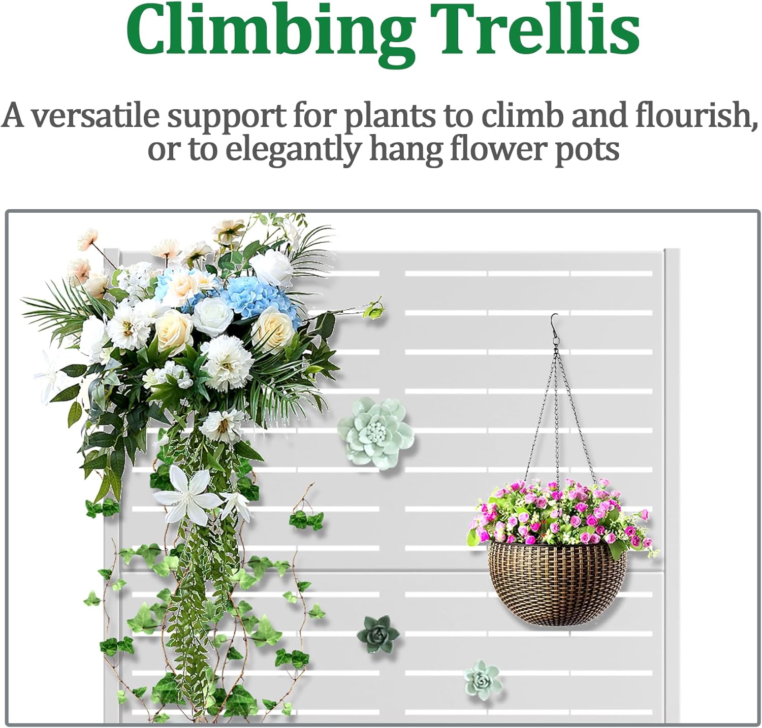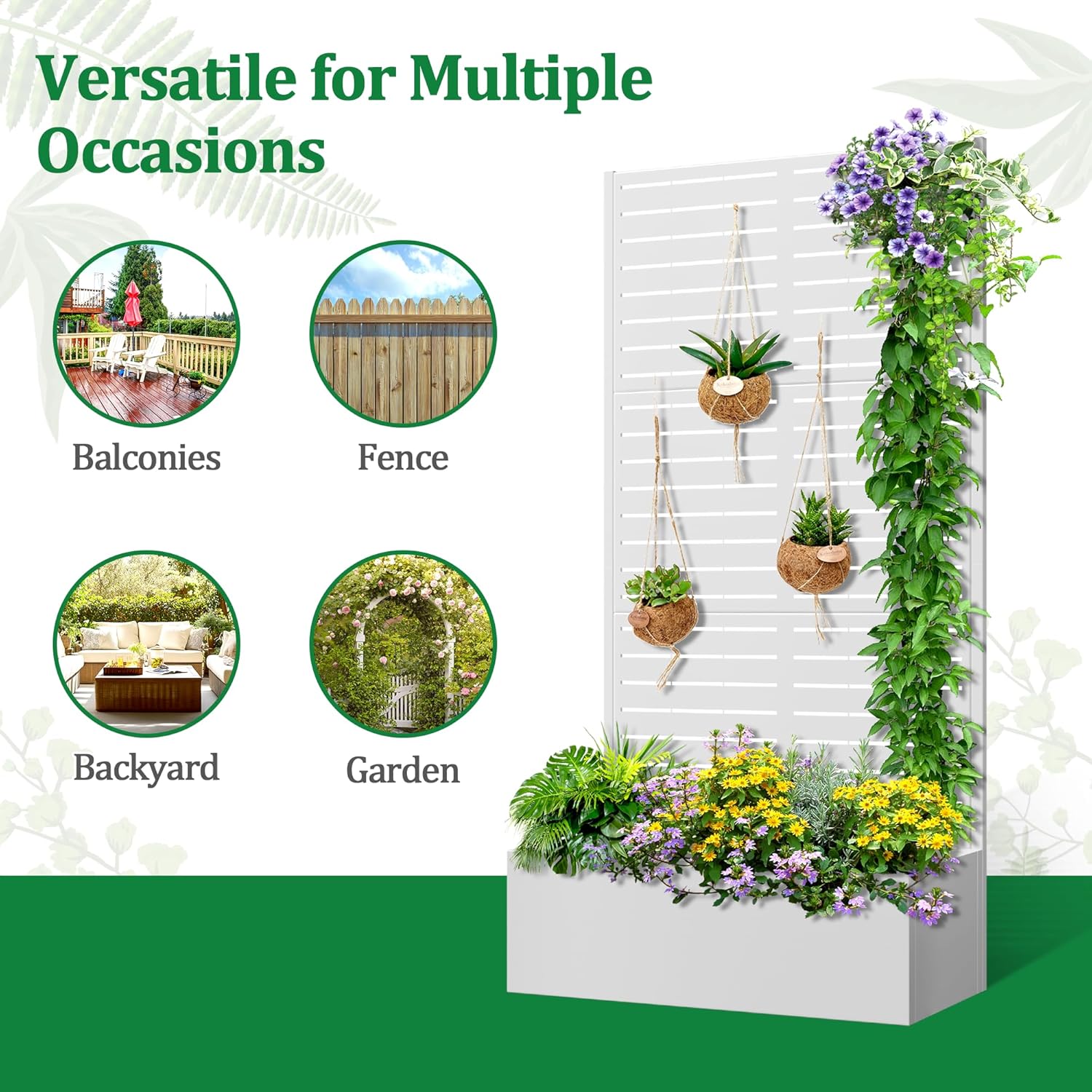 Metal Raised Garden Bed with Trellis, 2 in 1 Trellis with Planter Box & Privacy Screen for Climbing Plants, Vine, Outdoor Standing Flower Beds with Drainage Holes, 35.4"L x 15.7"W x 70.9"H, White