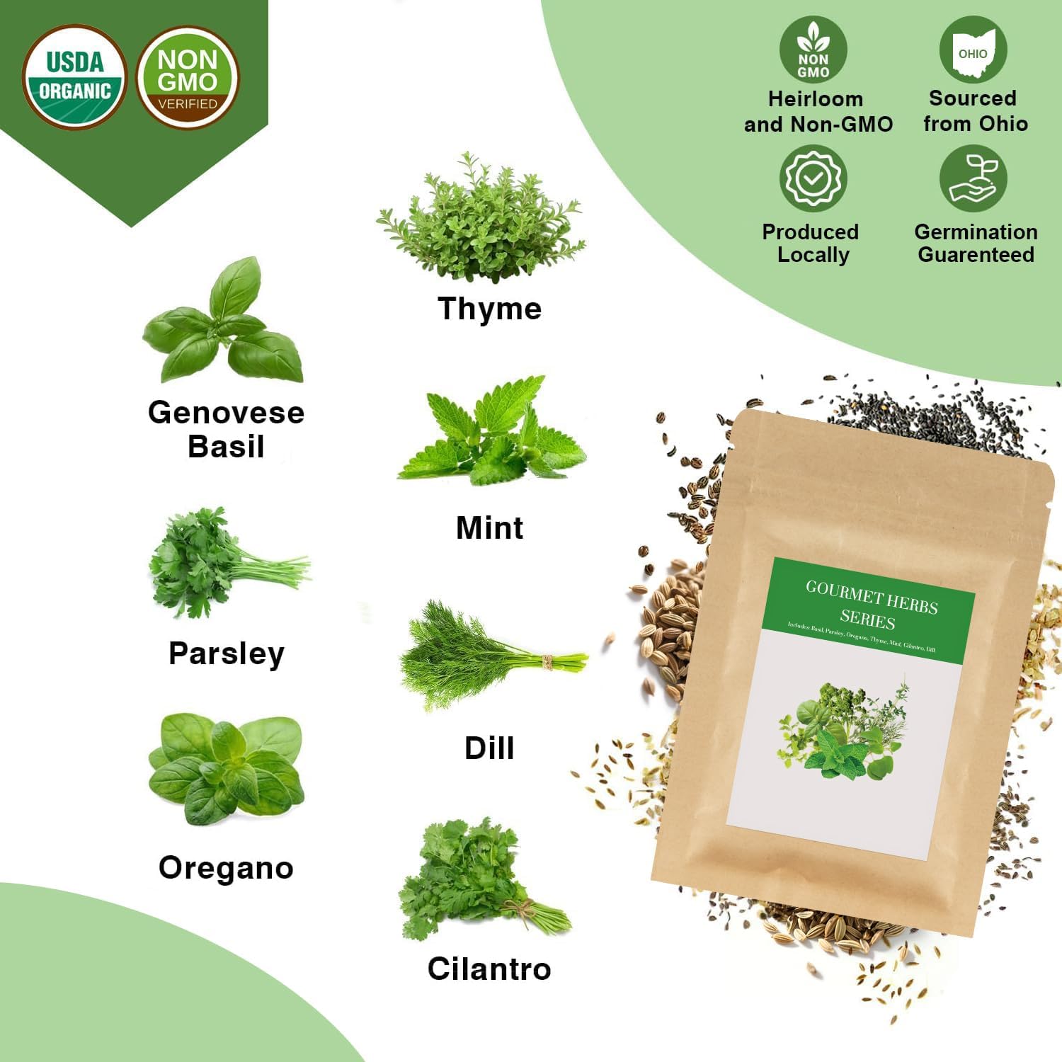 Gourmet Herb Seed Pod Kit for AeroGarden, idoo, Ahopegarden, MUFGA with Basil, Parsley, Thyme, Mint, Cilantro, Dill, Oregano - Compatible with All Hydroponics (7-Pod)