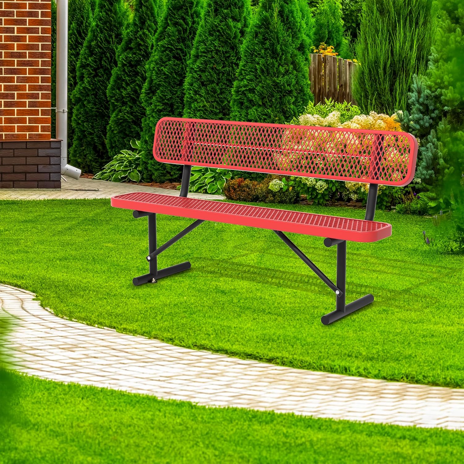 4/6/8 Feet Park Bench for Outside Heavy Duty Metal, Garden Benches Outdoor Bench with Backrest & Portable Frame, for Shopping Malls Stores Parks Patios Decks, Red