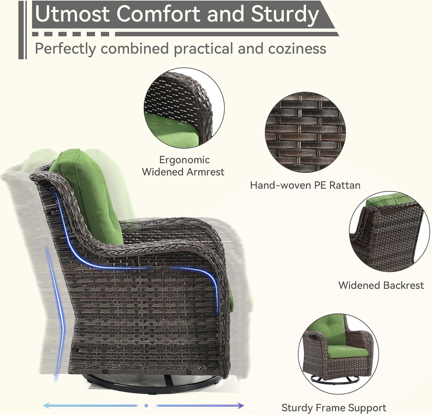 Outdoor Swivel Rocker Patio Chairs Set of 2 - Outdoor Wicker Patio Conversation Sets 2 Pieces with Olefin Fabric Cushions Suitable for Backyard Deck and Porch, Green