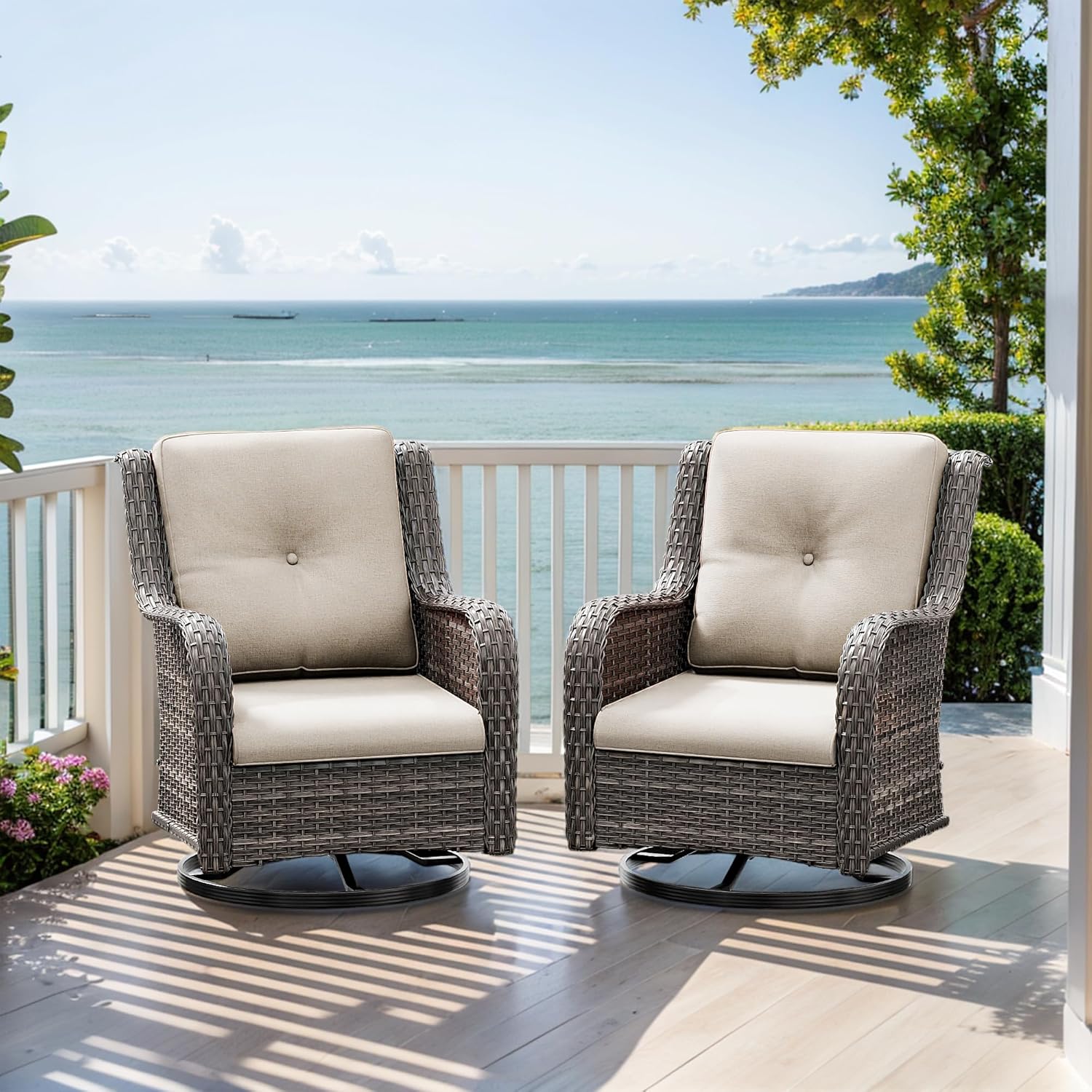 Outdoor Swivel Rocker Patio Chairs Set of 2 - Outdoor Wicker Patio Conversation Sets 2 Pieces with Olefin Fabric Cushions Suitable for Backyard Deck and Porch, Beige