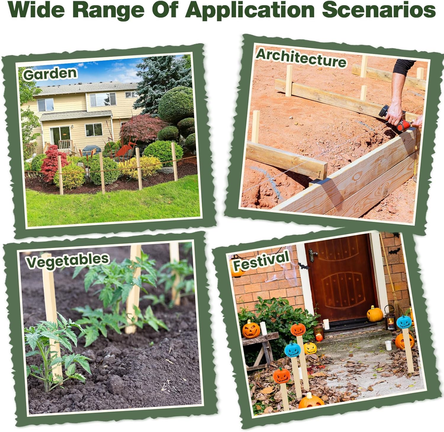 - Broad Application: besides gardening, these stakes can be utilized in various settings such as fence installations, surveying projects, and construction sites; They make good markers in residential or commercial projects for surveys, boundaries, baselines, and landscapes
