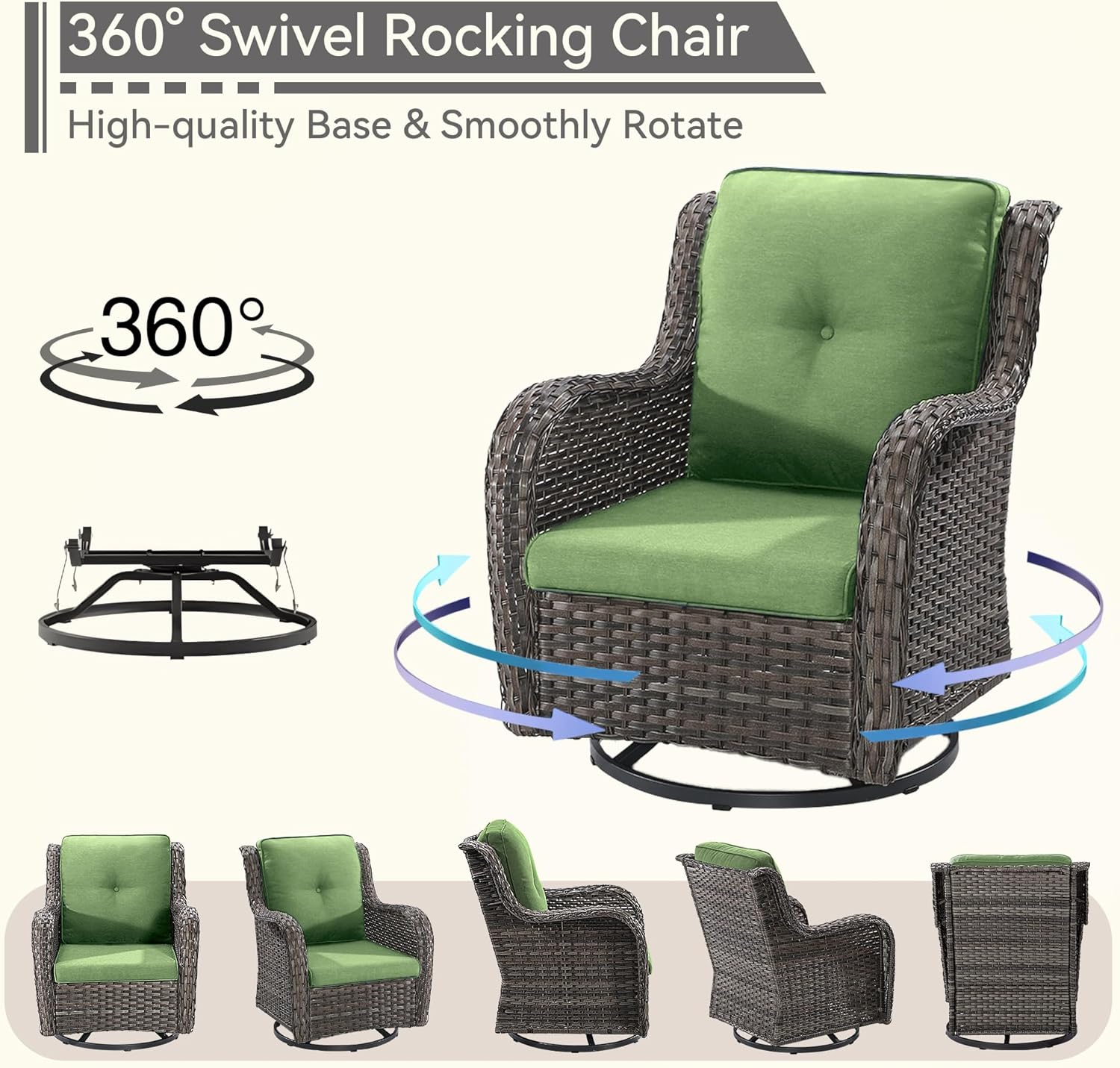 Wicker Patio Furniture Set 8-PCS with A 3-Seat Sofa, 2 Swivel Rocking Chairs, 2 Armchairs, 2 Ottomans and 1 Side Table Patio Conversation Set, Green