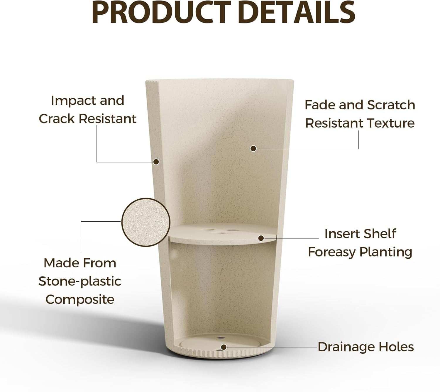 - Weatherproof Construction: Made from high-quality, UV-resistant plastic (heavy-duty resin), these planters withstand extreme temperatures without fading or cracking. Lighter than ceramic pots but just as sturdy