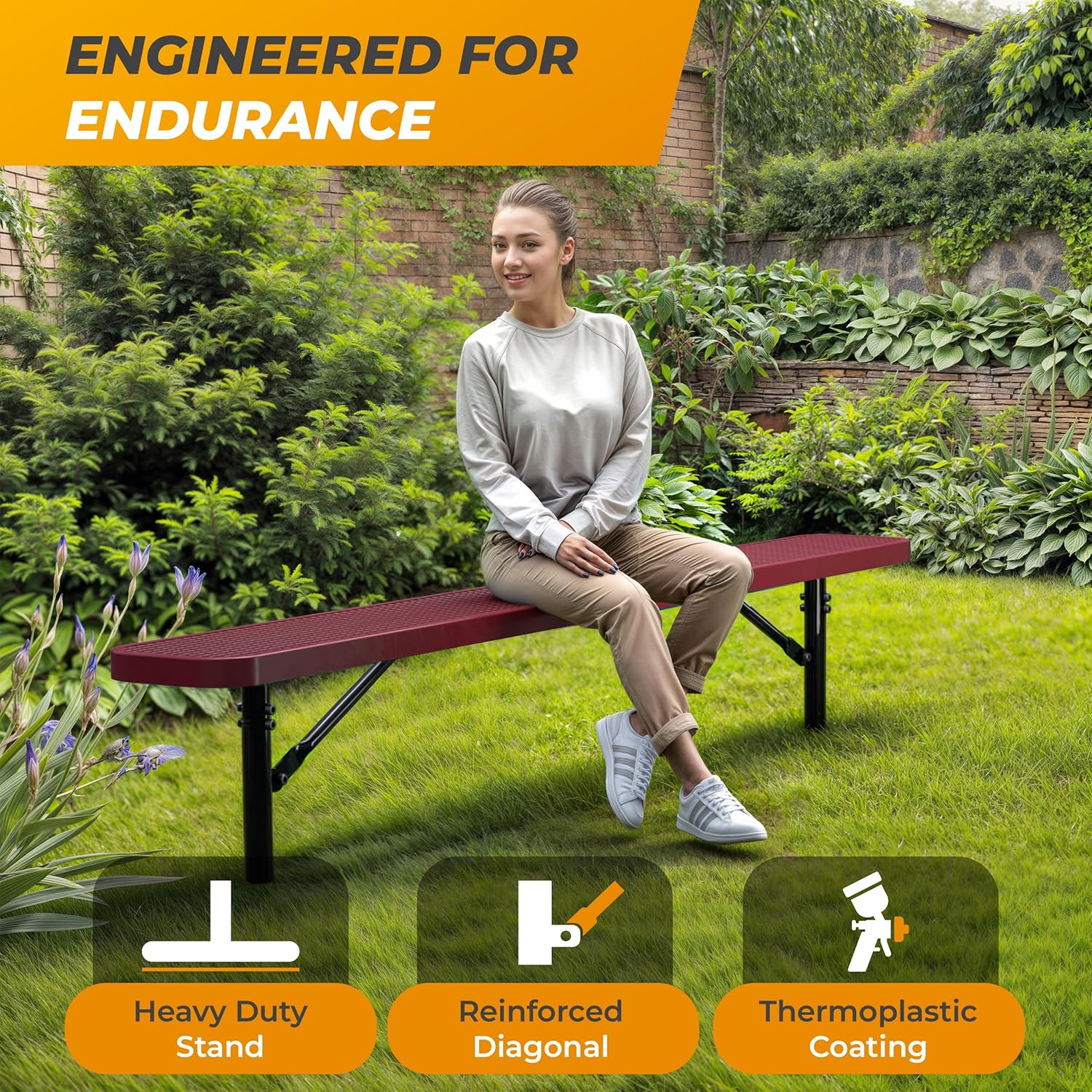 Heavy-Duty Outdoor Metal Bench, Thermoplastic-Coated, Inground, Weatherproof, Commercial-Grade for Parks, Gardens, Patios, Stores & More (8 Ft - Inground, Red)