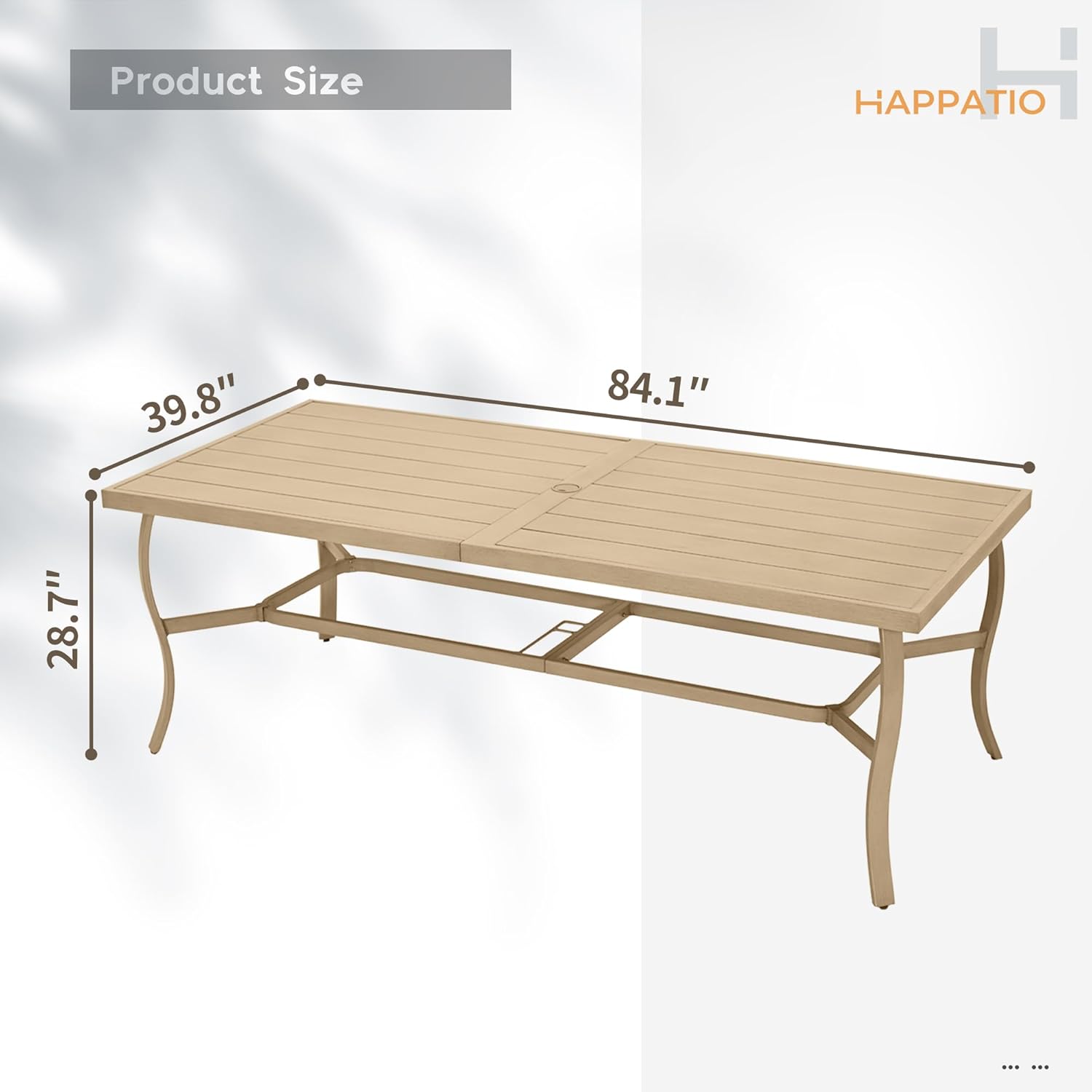 HAPPATIO Outdoor Dining Table for 8, Aluminum Rectangle Outdoor Dining Table with Umbrella Hole, All-Weather Aluminum Patio Dining Table for Garden Yard Poolside, Only Table, Beige
