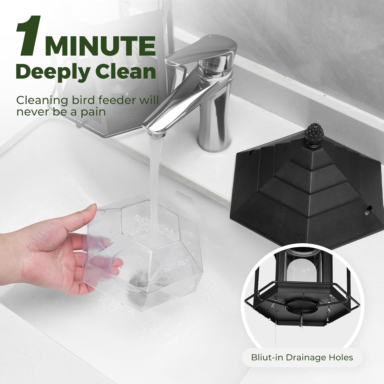 - 【Easy to Refill & Clean】 Easily remove the rainproof roof and wide mouth for quick refilling and cleaning.Transparent seed compartment, easily to see when seeds runs out and replenish in time.