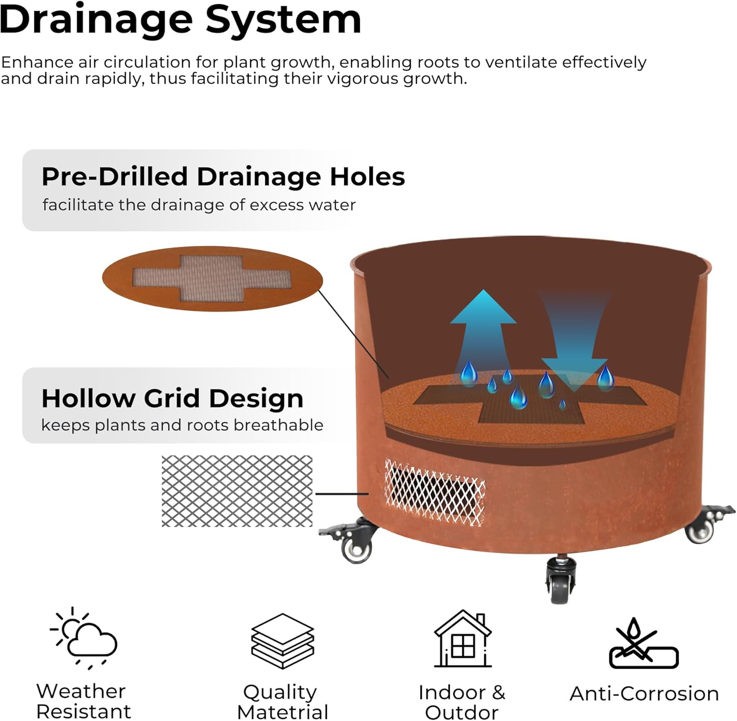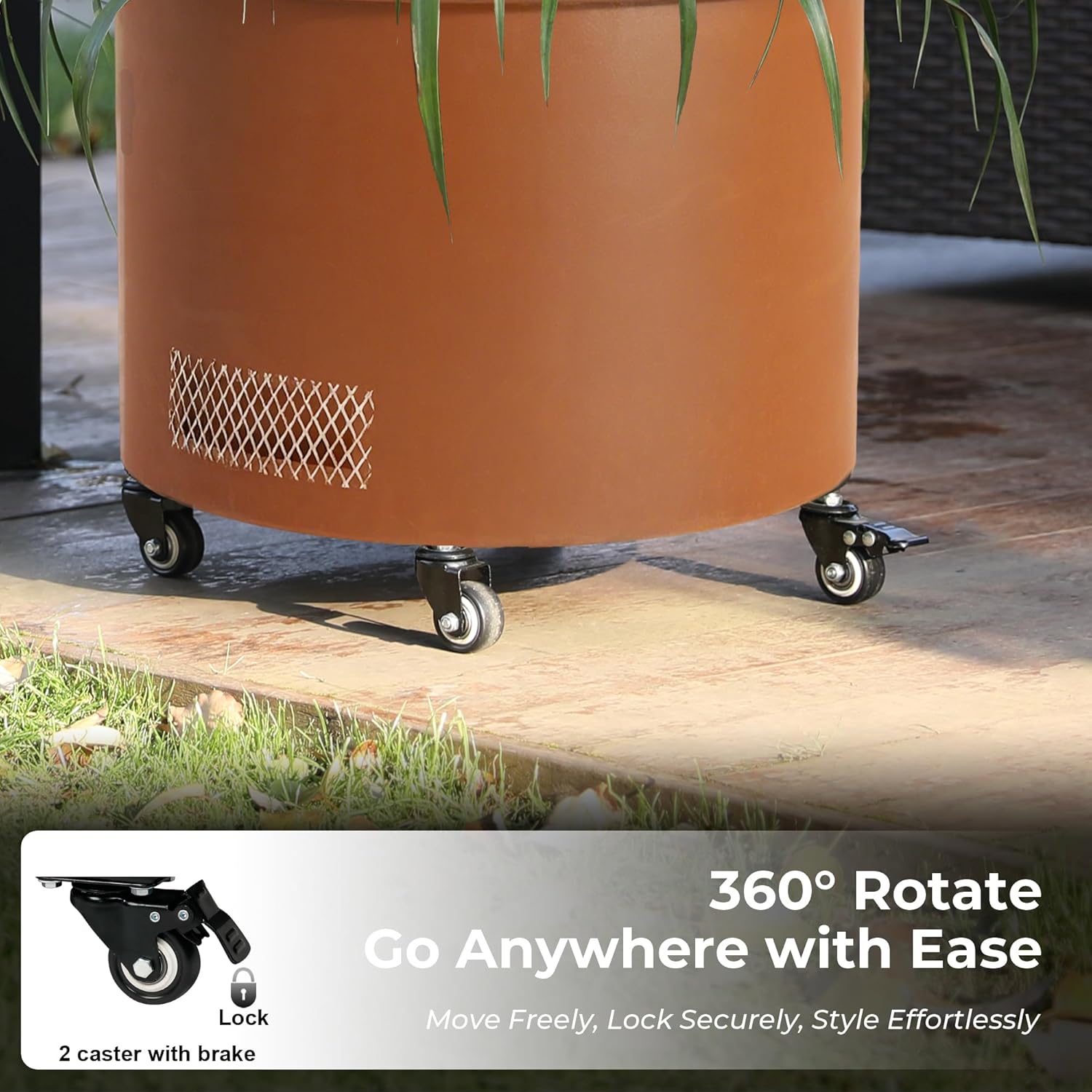- Tool-Free Mobility System: 4 lockable casters (2 brake-equipped) transform this steel planter into a mobile garden bed, rolling seamlessly across decks/patios without assembly tools—simply secure wheels to pre-drilled base.